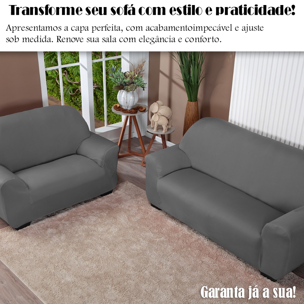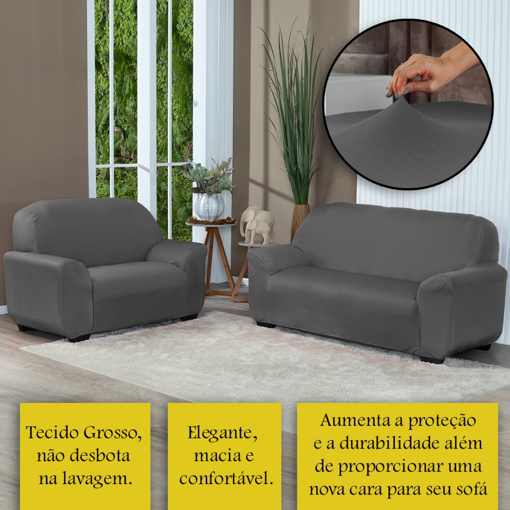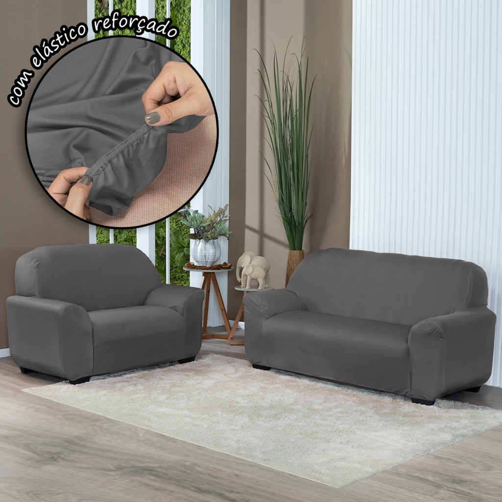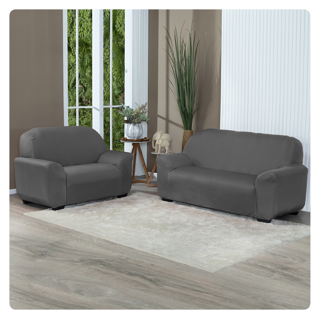 Kit Capa De Sofá Lisa 2 e 3 Lugares Malha Gel Cor Cinza