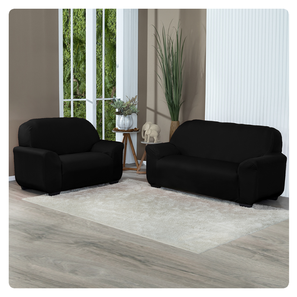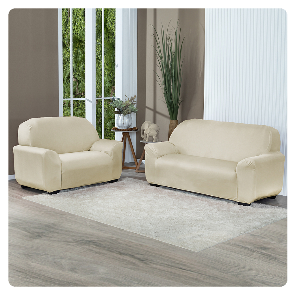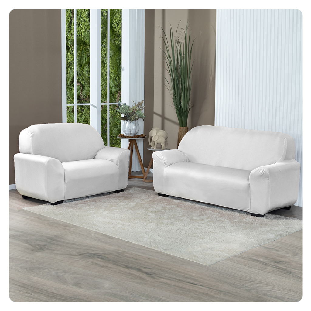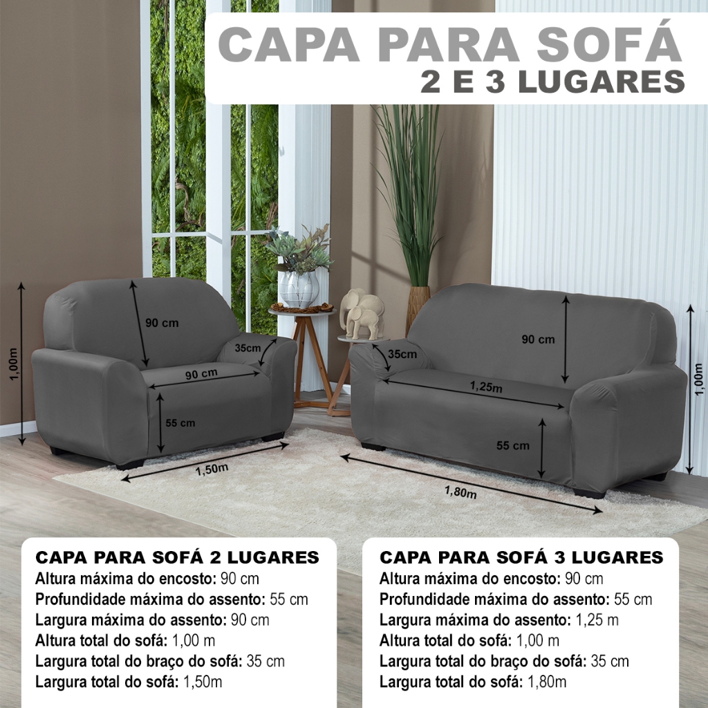 Kit Capa De Sofá Lisa 2 e 3 Lugares Malha Gel Cor Cinza