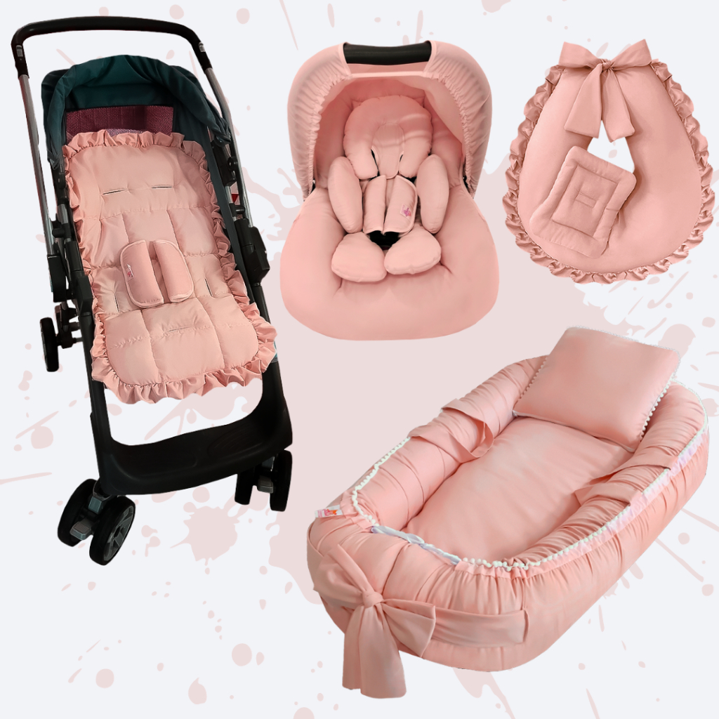 Kit Capas Carrinho e Capa Bebe Conforto c/capota e Apoio Redutor + Amamentar e Ninho Redutor