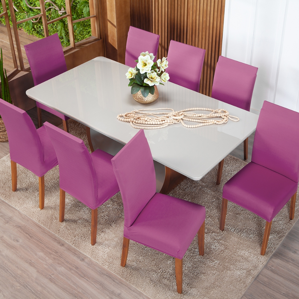 Kit Capas De Cadeira Jantar Malha Gel Com Elástico Cores Lisas