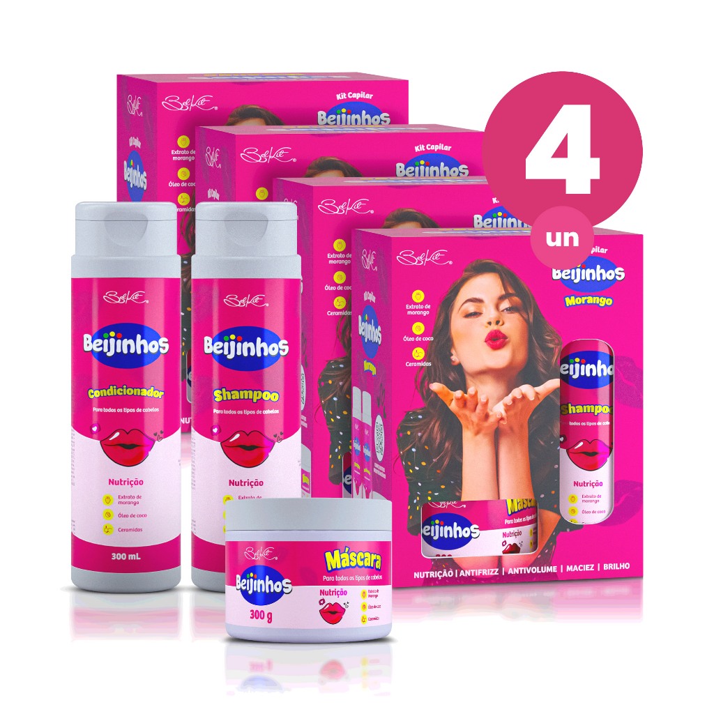 Kit Capilar 12 itens Beijinhos Morango Recontrução Maciez e Brilho Belkit