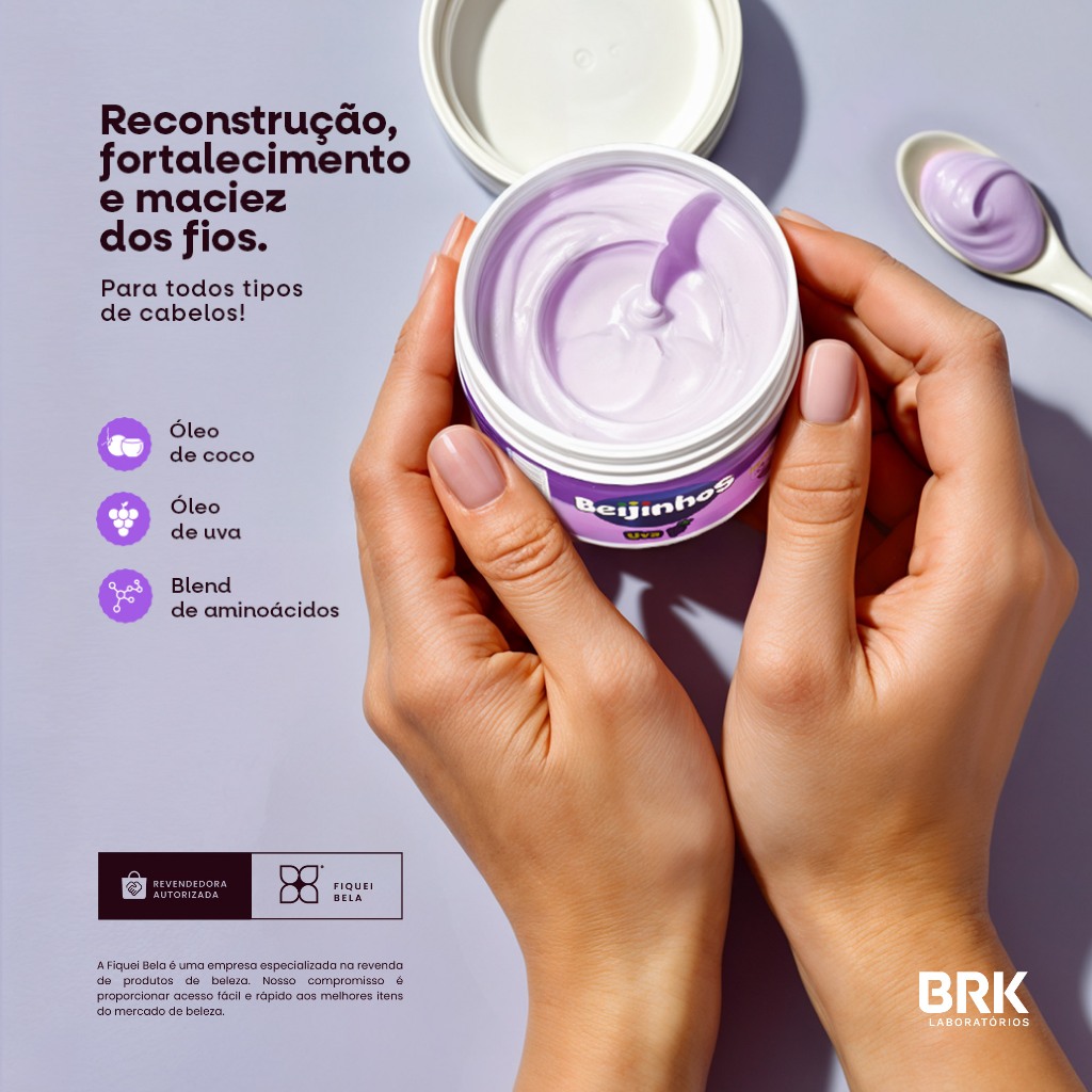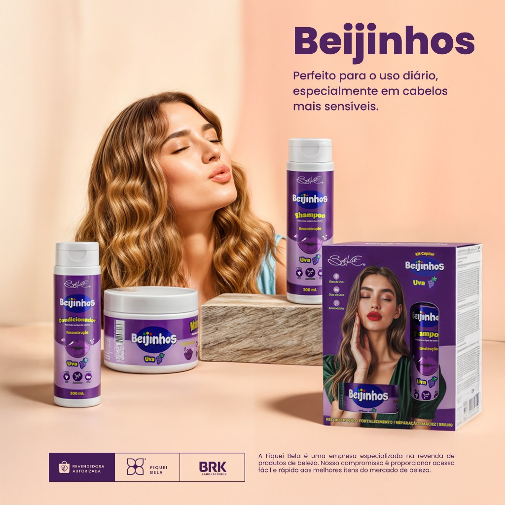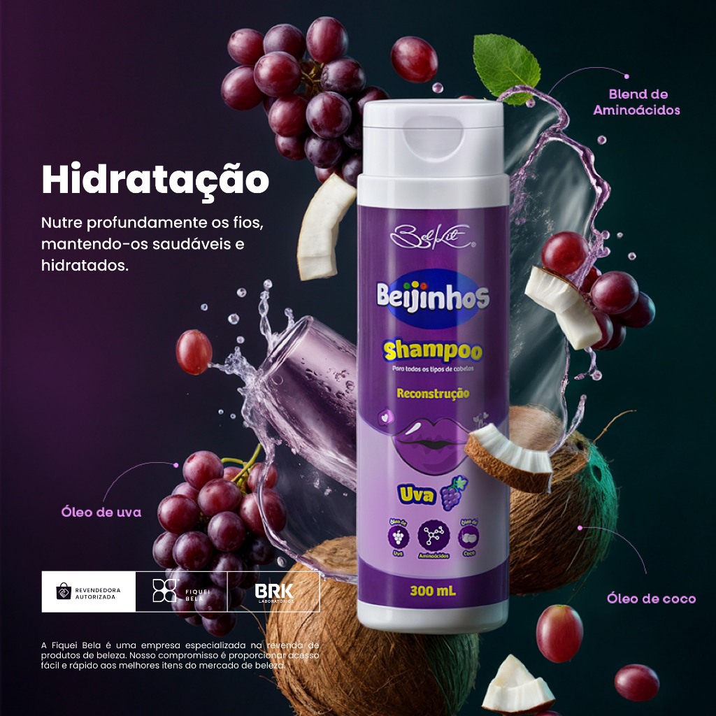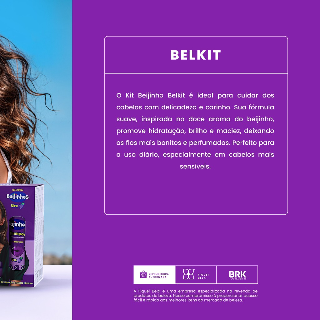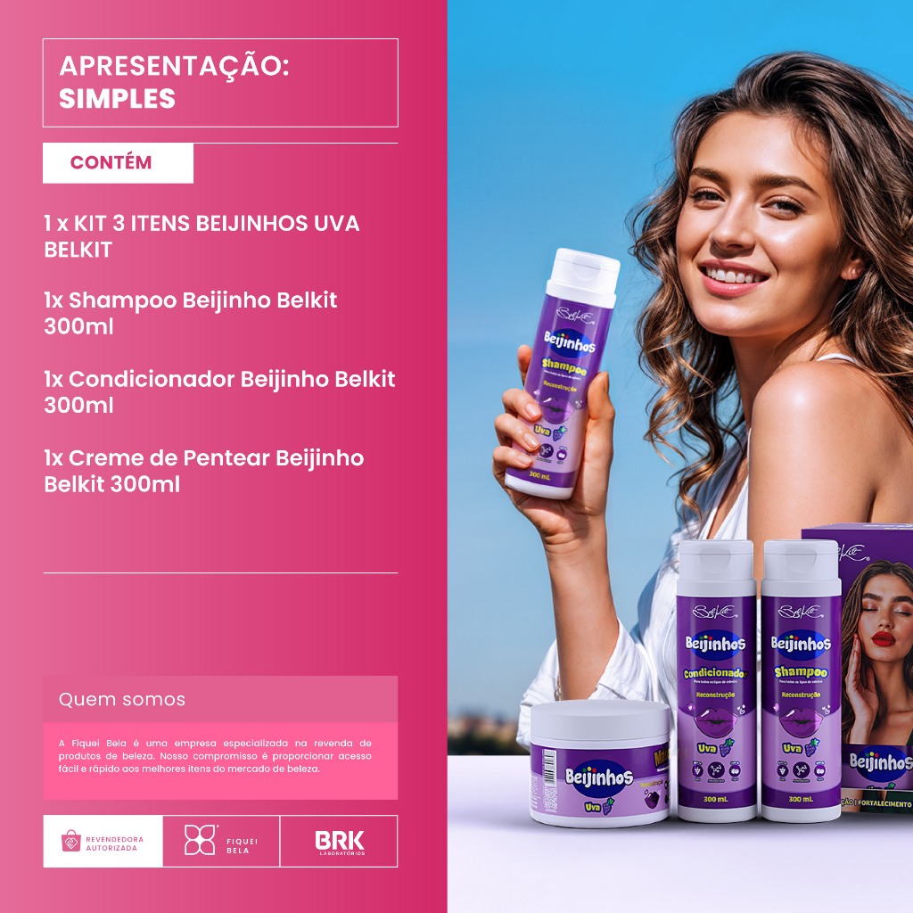 Kit Capilar 3 itens Beijinhos Uva Recontrução Maciez e Brilho Belkit