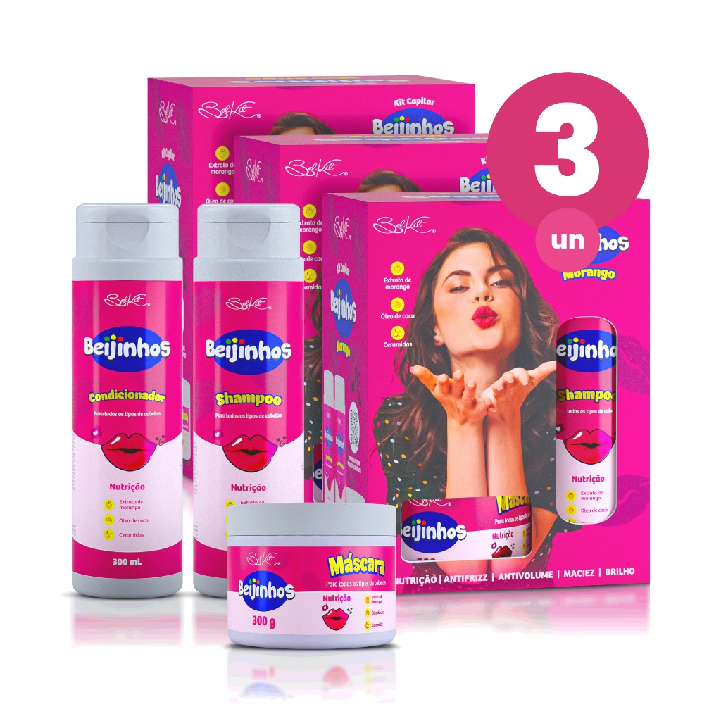 Kit Capilar 9 itens Beijinhos Morango Recontrução Maciez e Brilho Belkit