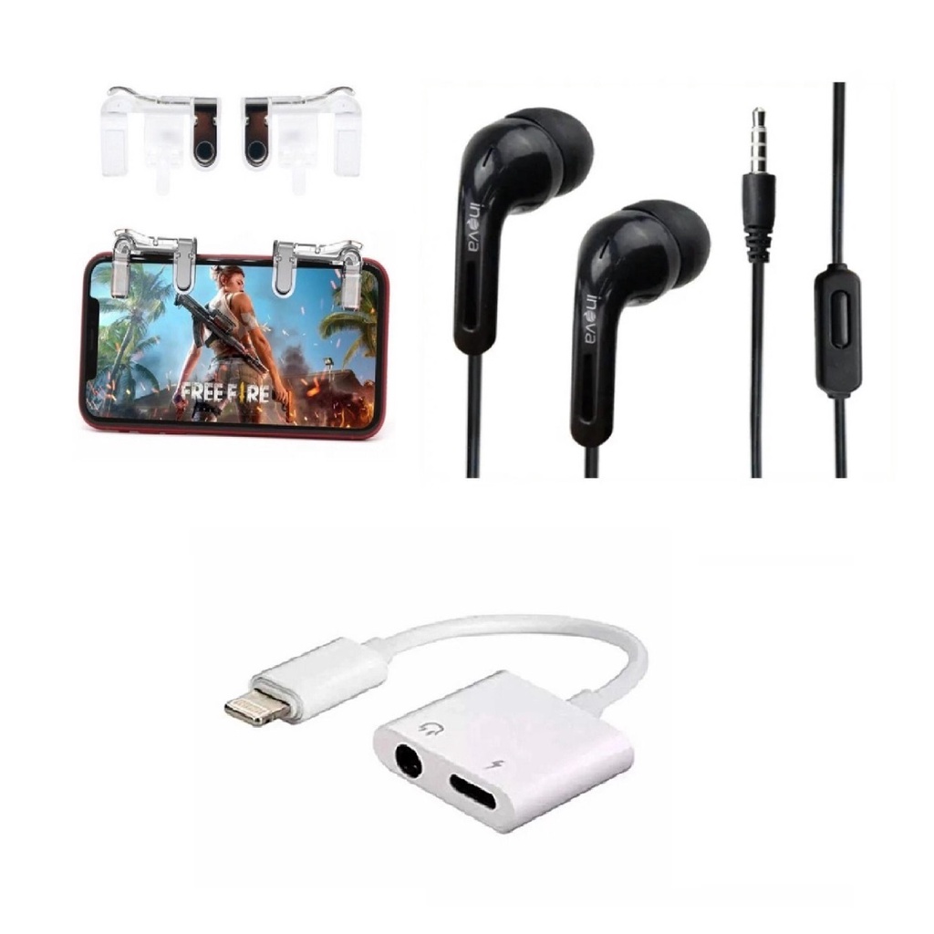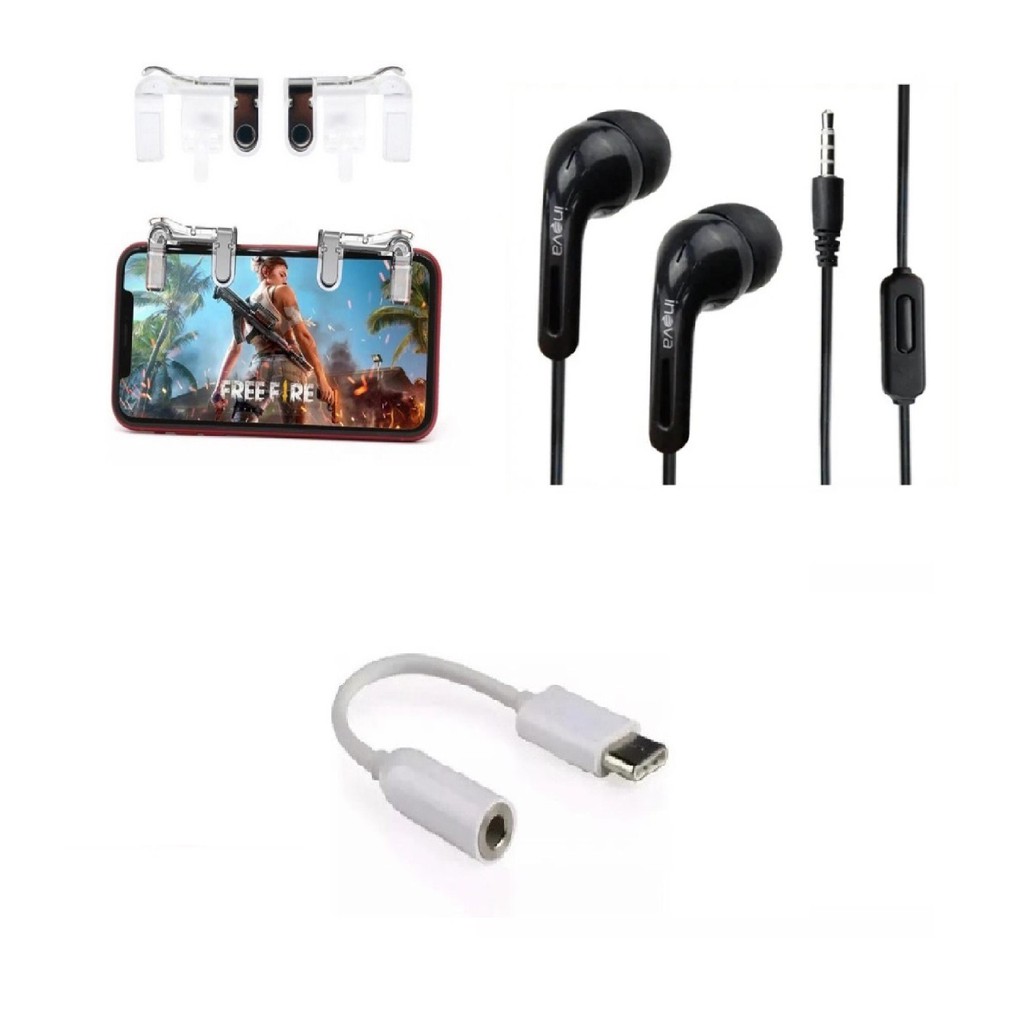 Kit Celular Gamer Gatilho Fone Adaptador P2 Type C Lightning