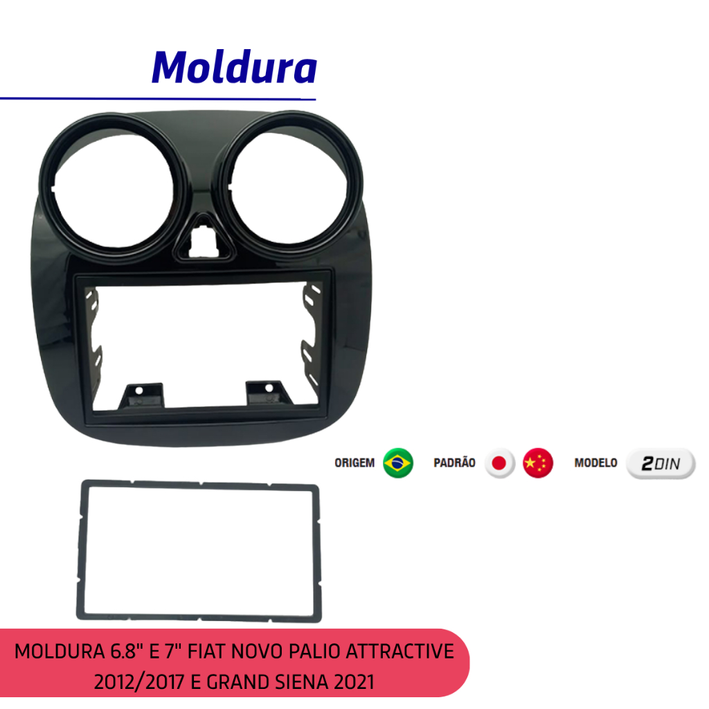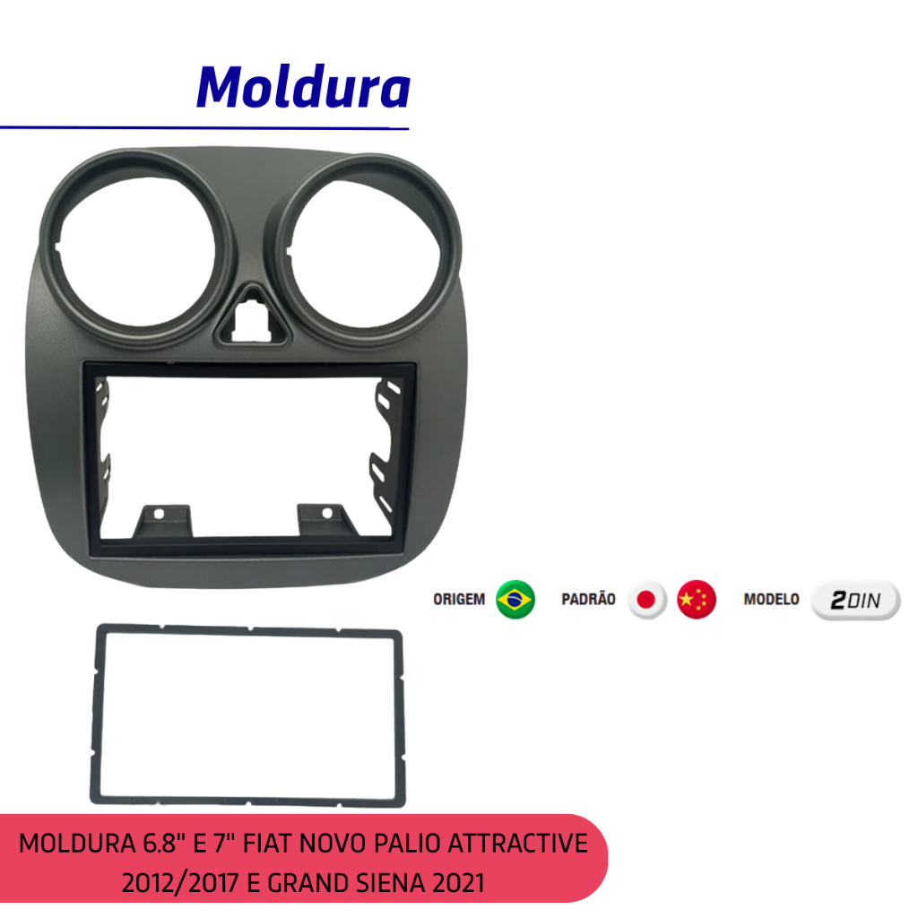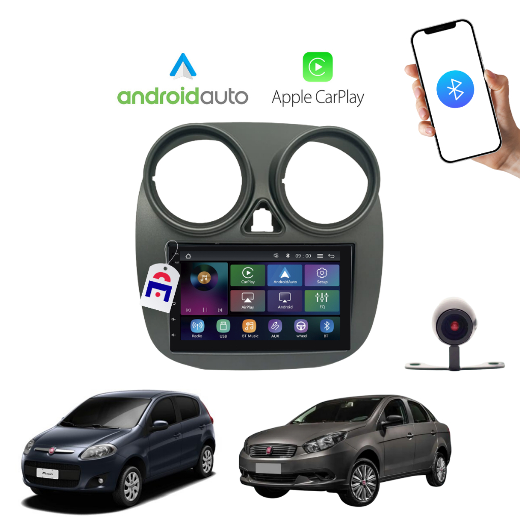 Kit Central Multimídia Palio Attractive 12/17 Grand Siena 2021 2 Din 7 Pol Carplay Android Auto Sem Fio + Câmera de Ré