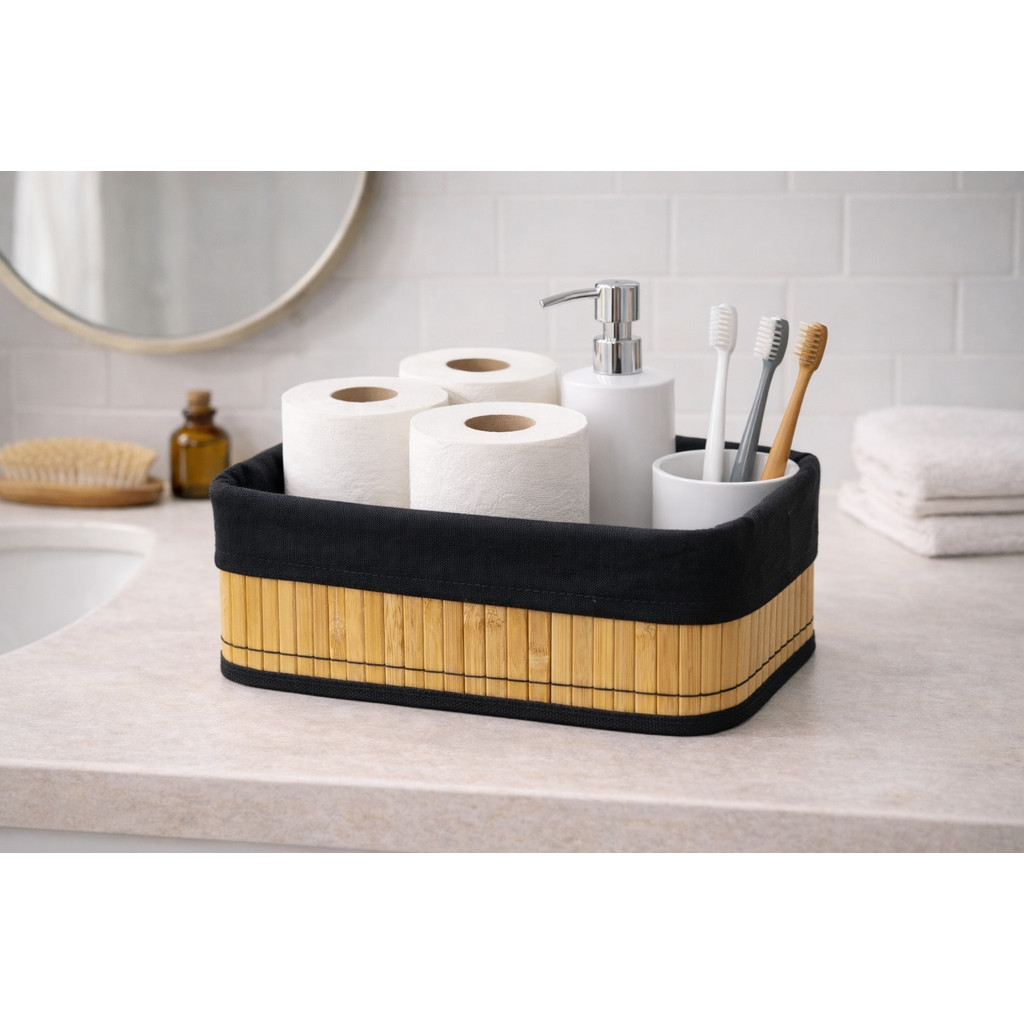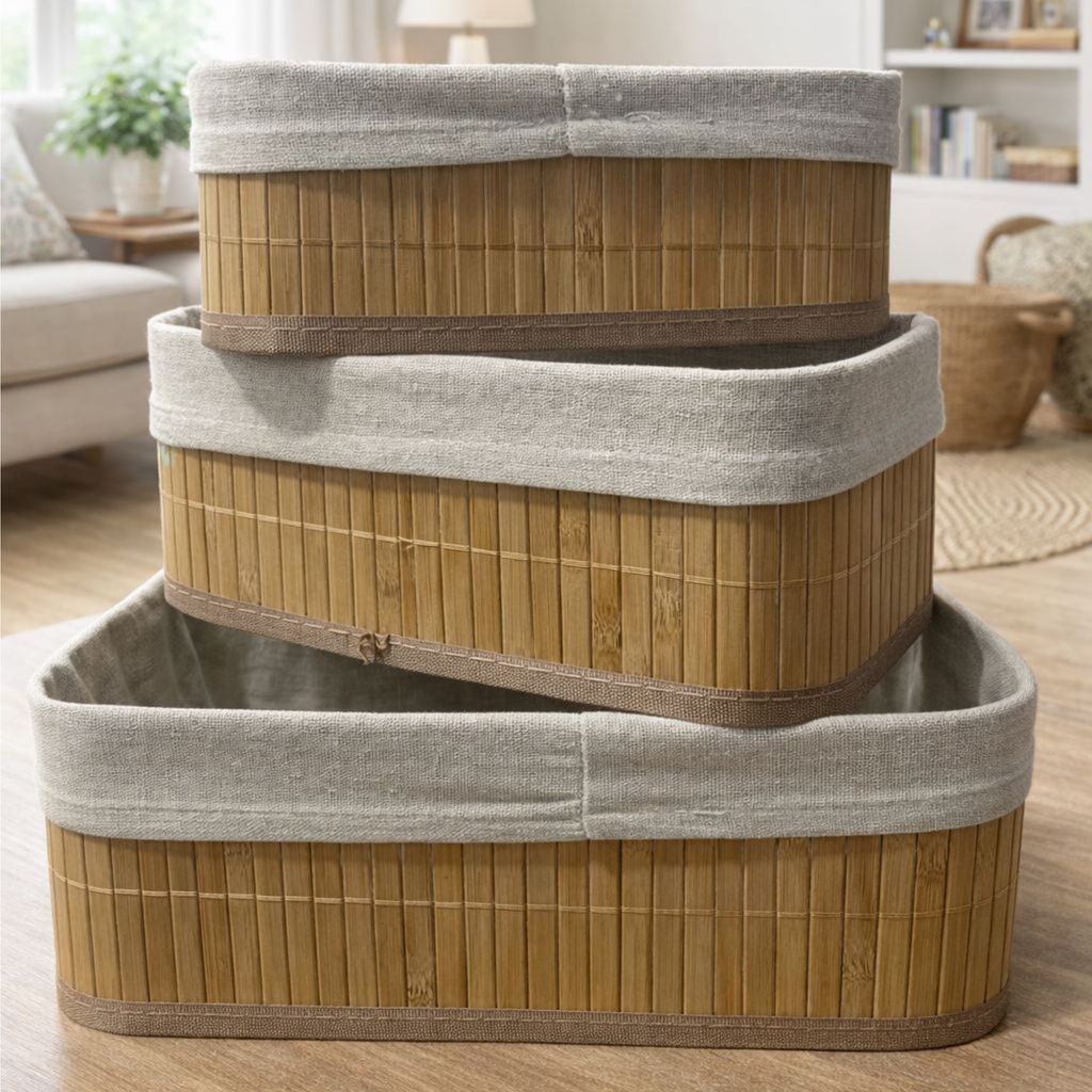 Kit Cestos De Bambu Organizadores C/ Forro Preto P/M/G - Já Montado