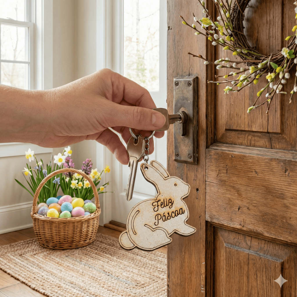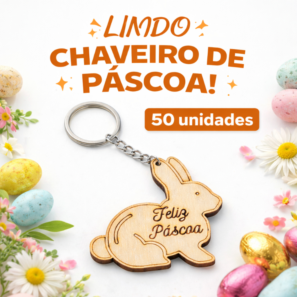 Kit Chaveiros Coelho Feliz Pascoa Lembrancinha Mdf 3mm Decoracao 10/25/50/100