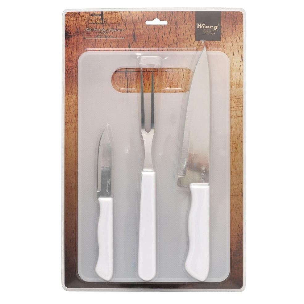 Kit Churrasco 4 Peças com Tábua Polipropileno/Inox Gourmet