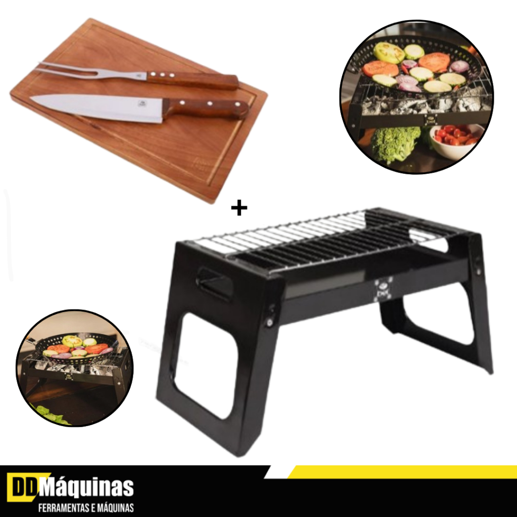 Kit Churrasqueira Dallas C/ Grelha Portátil + Tabua Com Garfo e Faca - Bel