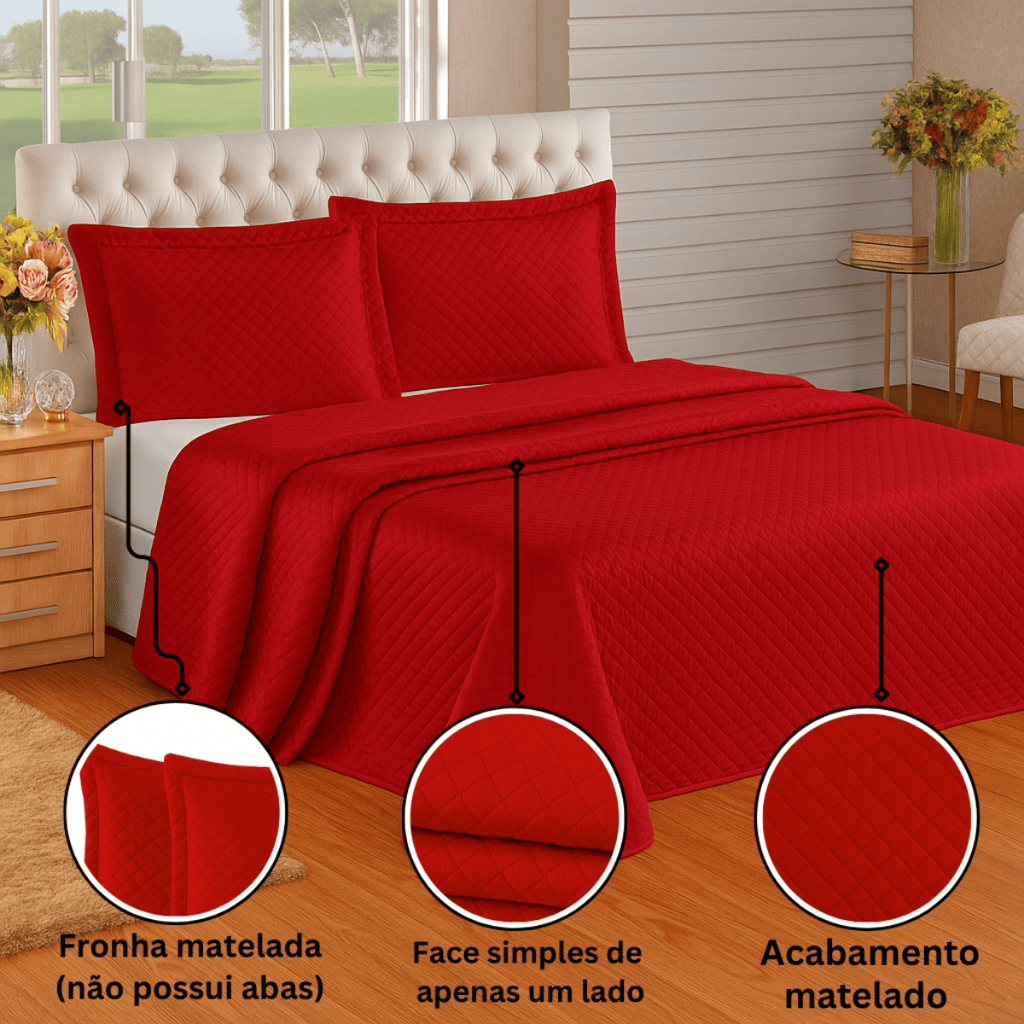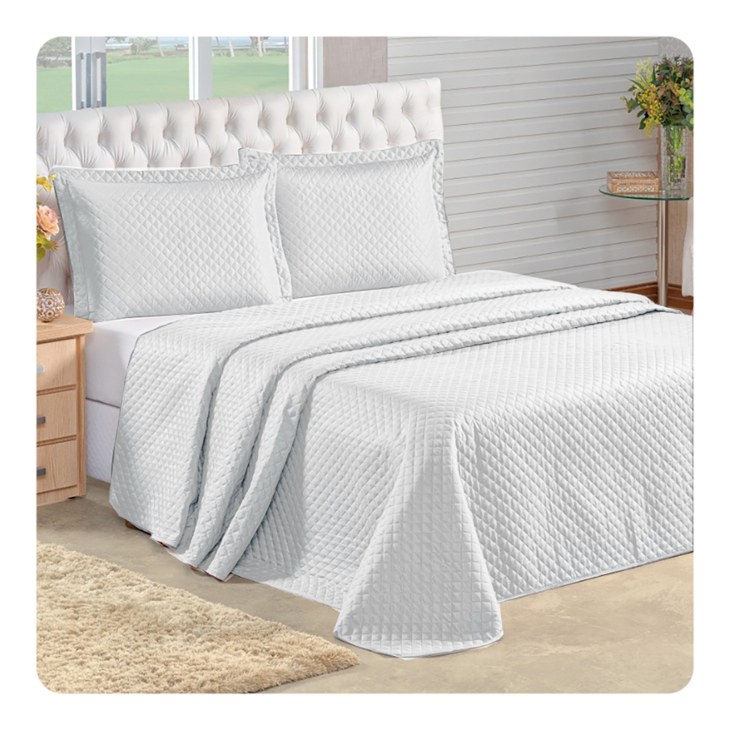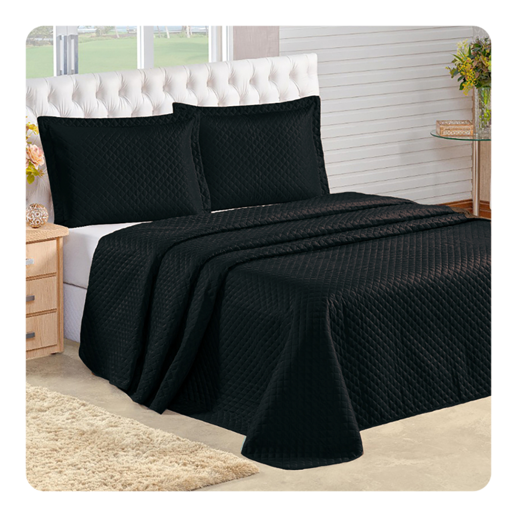 Kit Cobre Leito Colcha Queen Com Porta Travesseiro Premium