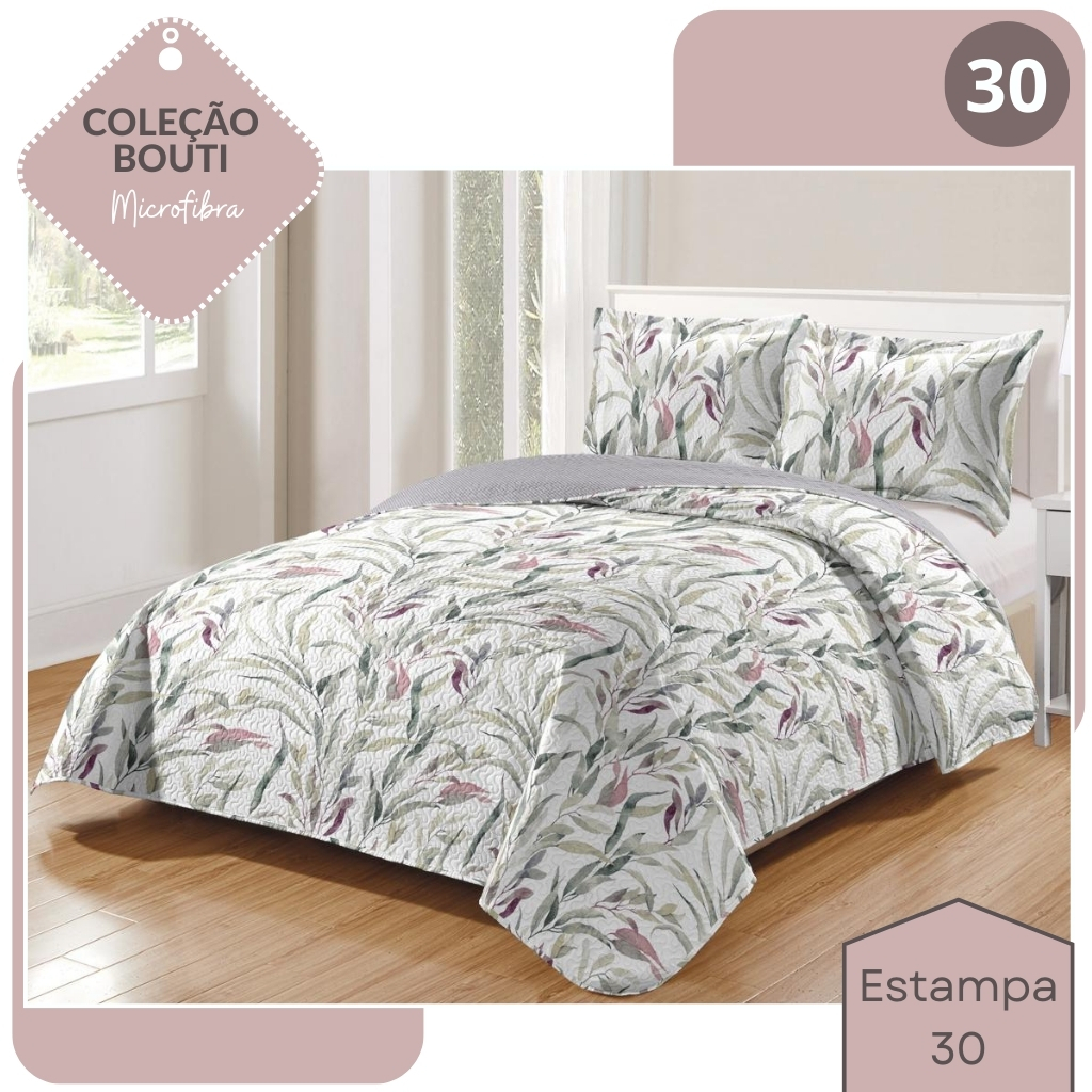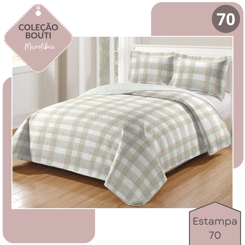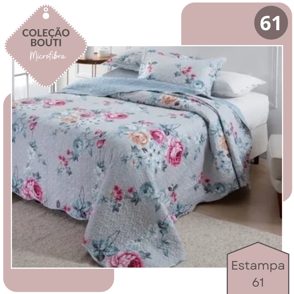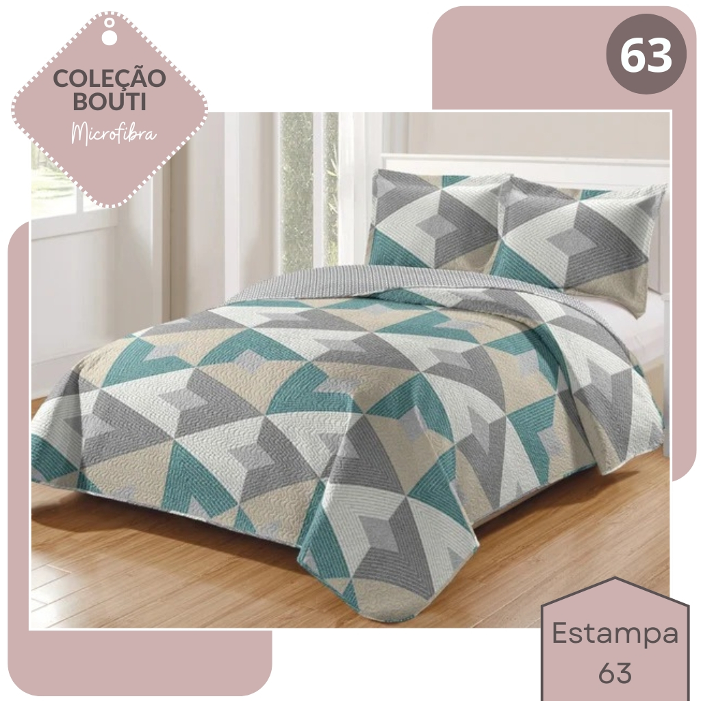 Kit Colcha Cobre Leito Casal Queen 3 Peças Dupla face Bordado Bouti Ultrassônico Premium