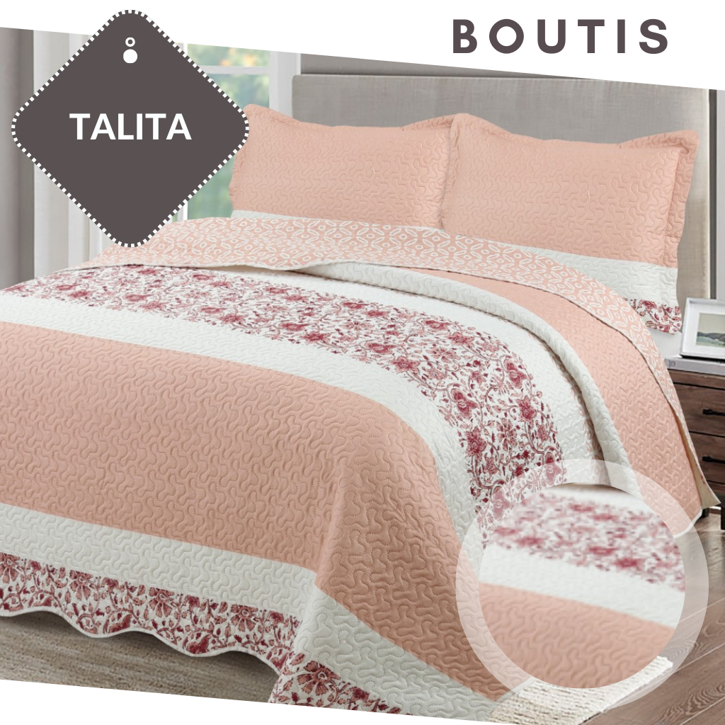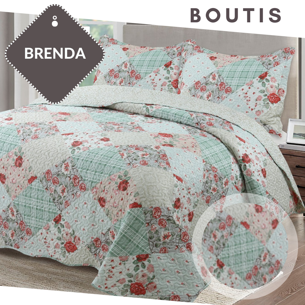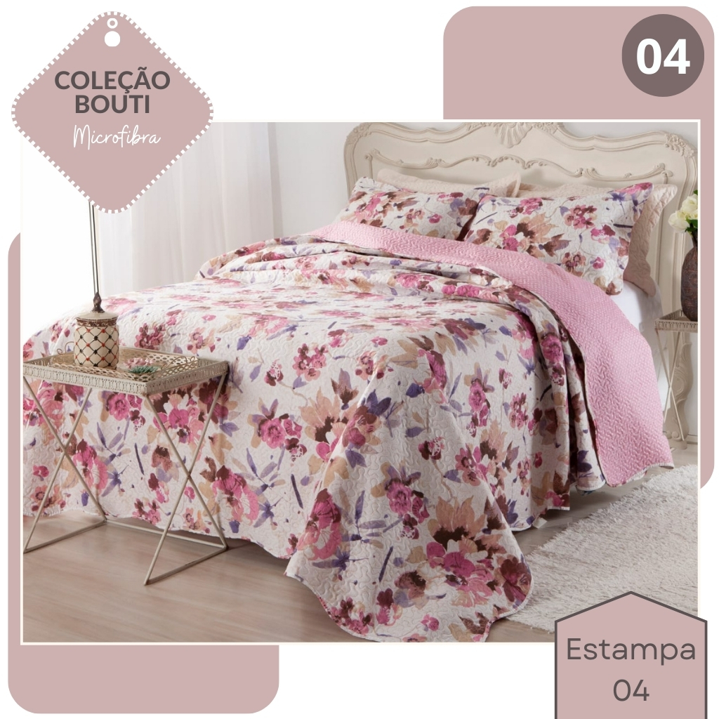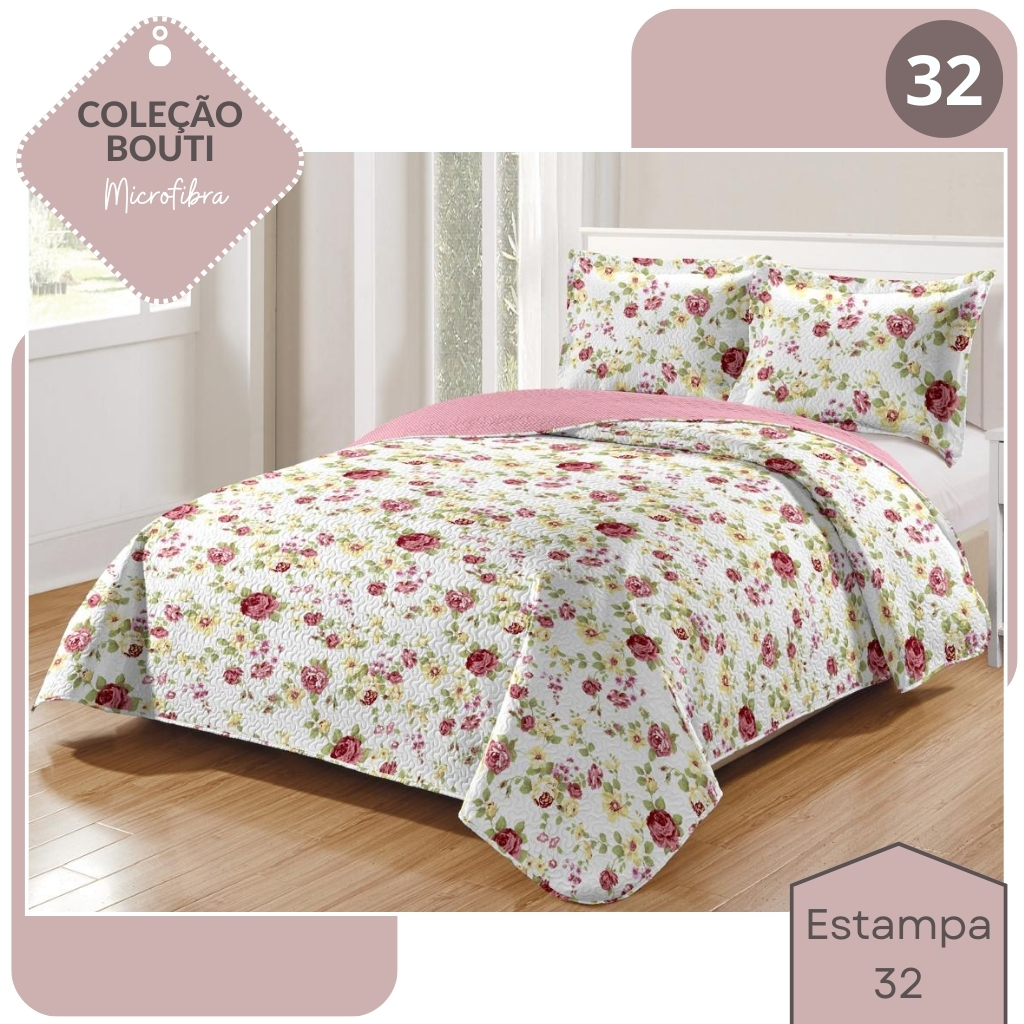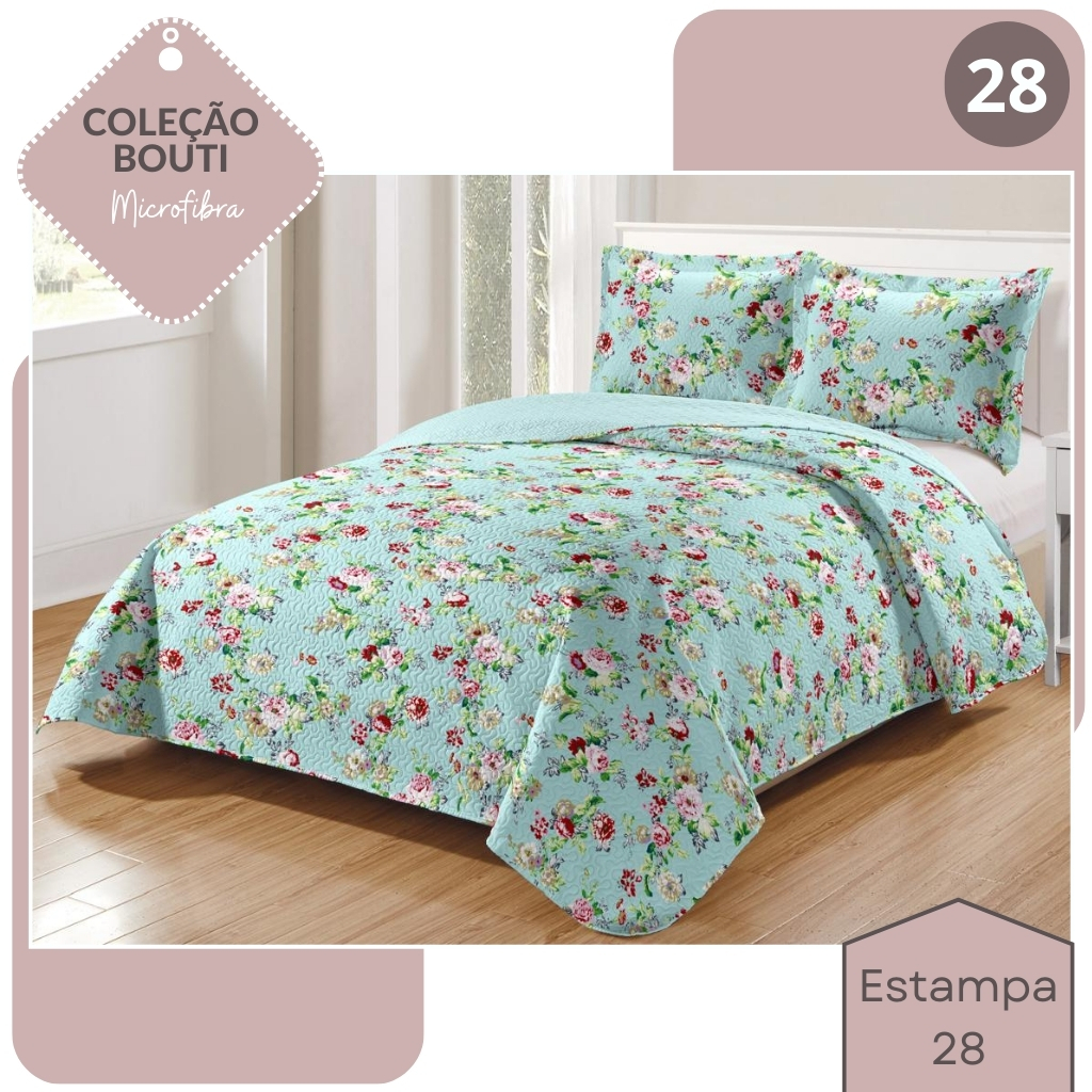 Kit Colcha Cobre Leito Casal Queen 3 Peças Dupla face Bordado Bouti Ultrassônico Premium
