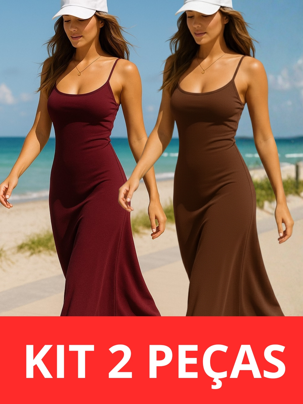 Kit Com 02 Vestido De Alcinha Com Regulagem Viscolycra Premium