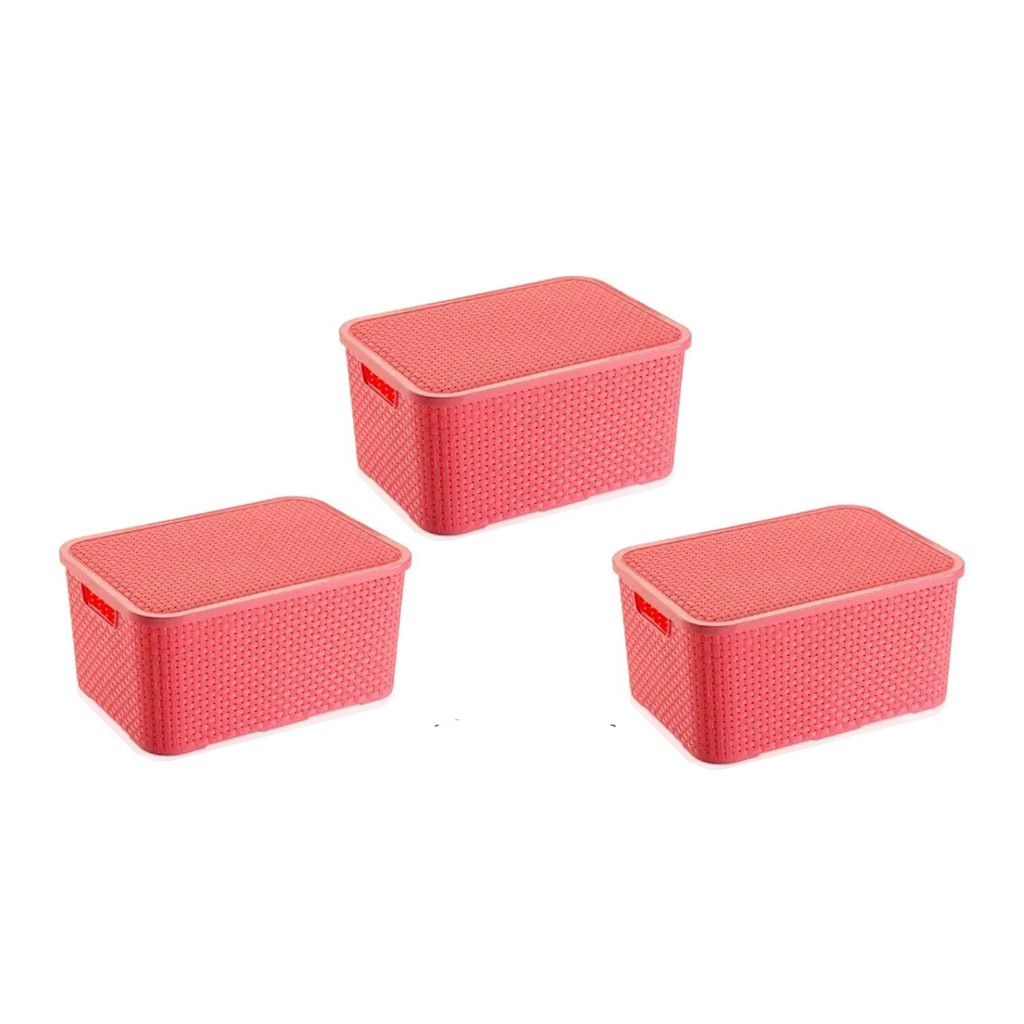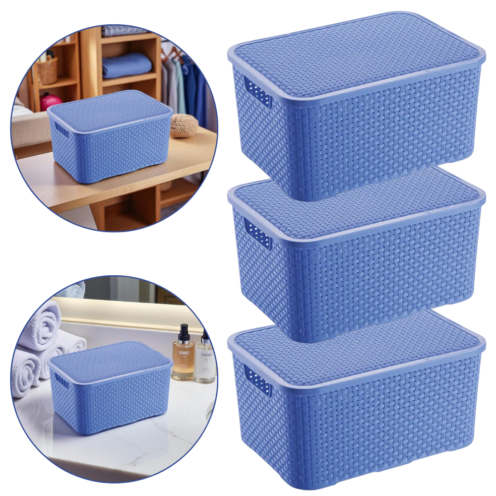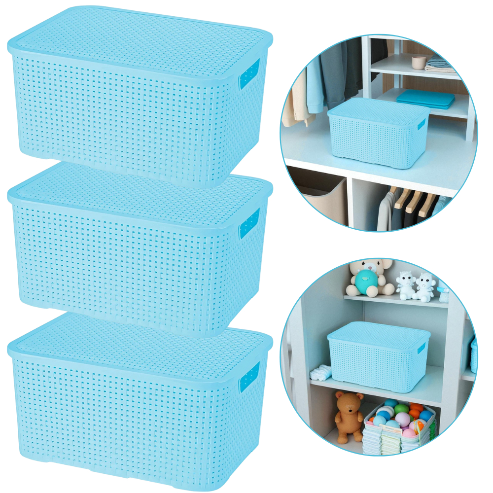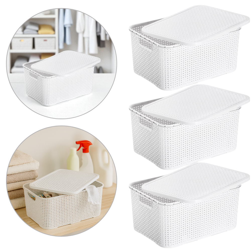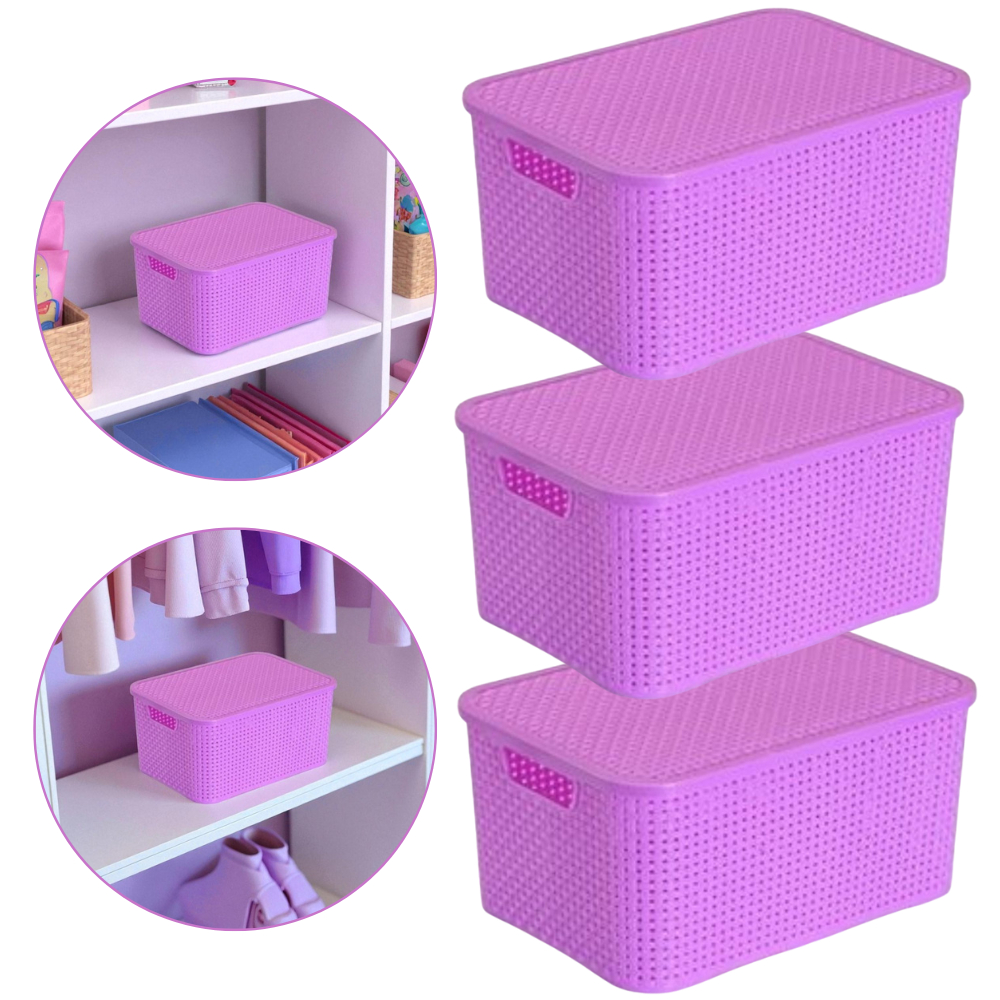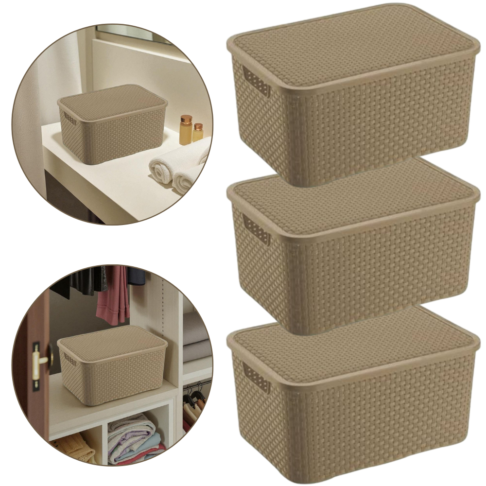 Kit Com 03 Cestos Organizadores Rattan M Com Tampa 7 Lts