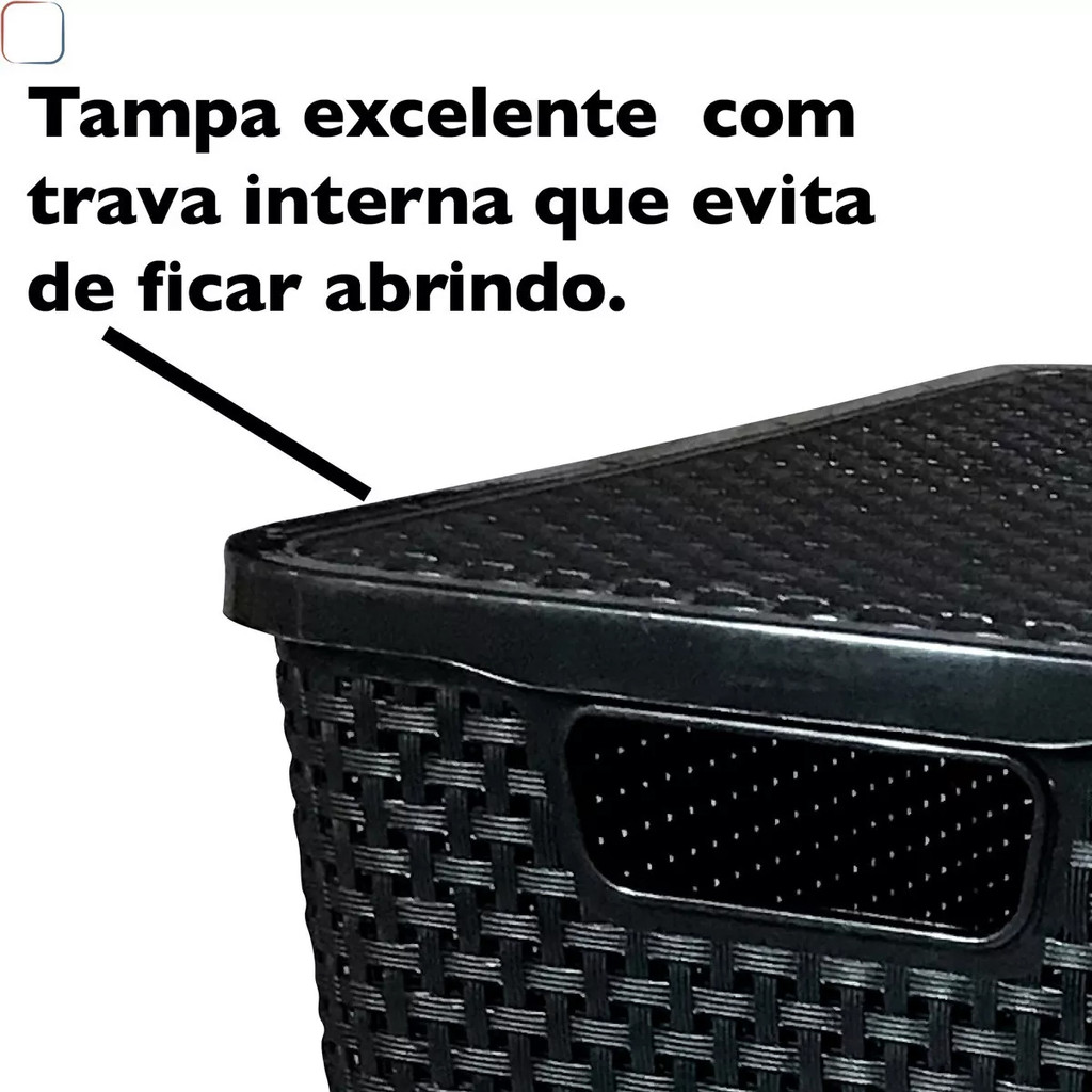 Kit Com 10 Cesto Caixa Organizadora Rattan Com Tampa 7 Litros Preto Ideal p/ Armarios Banheiro Cozinha Quarto Dispensa