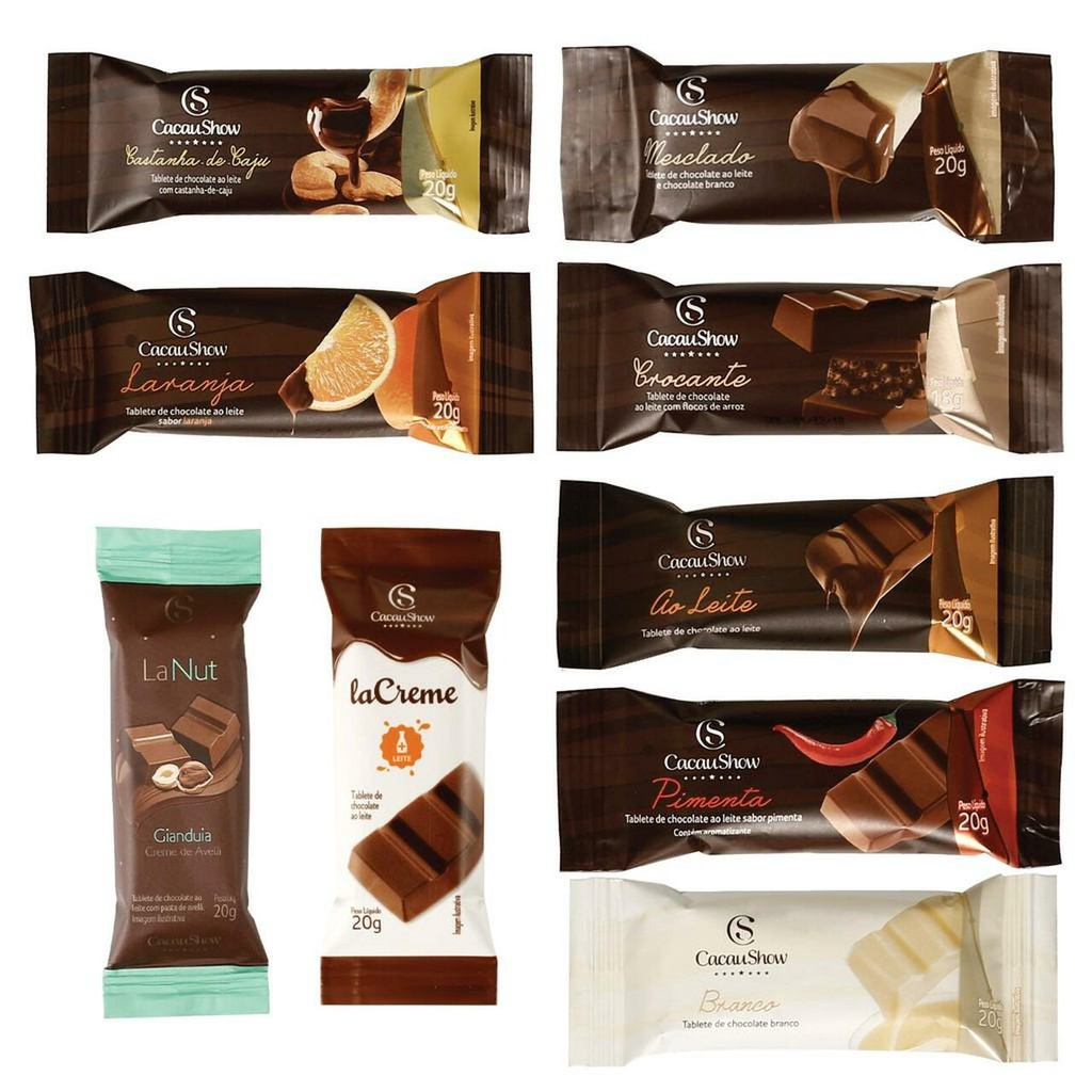 Kit Com 10 Tabletes Chocolate 20g 18g cada Cacau Show Sabores Sortidos