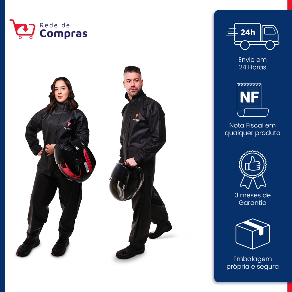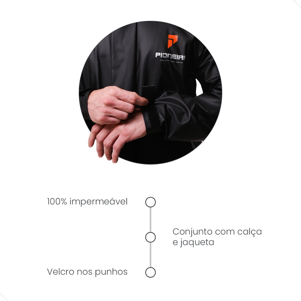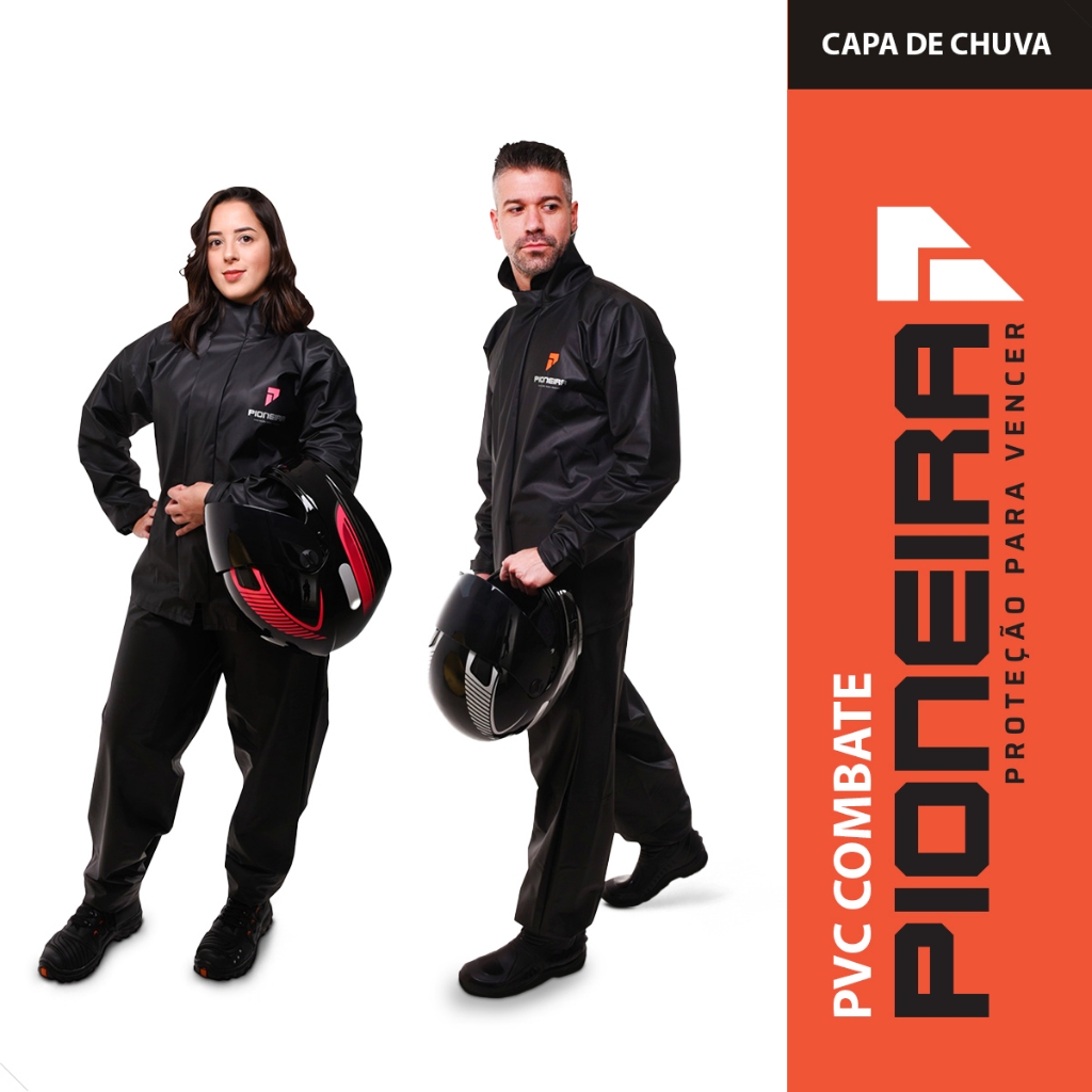 Kit Com 2 Capas de Chuva Impermeavel PVC Pioneira Feminino Detalhes Rosa + Masculino Preto Pvc