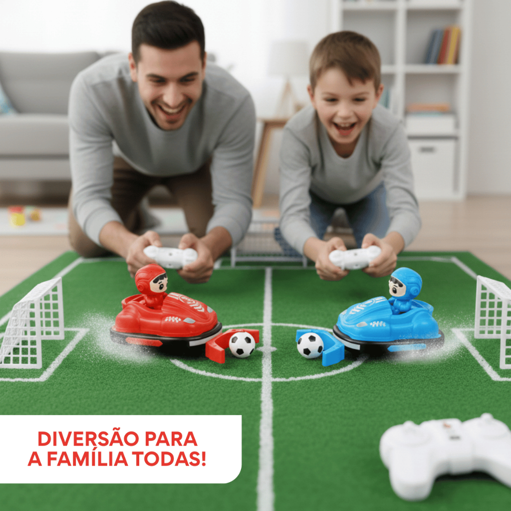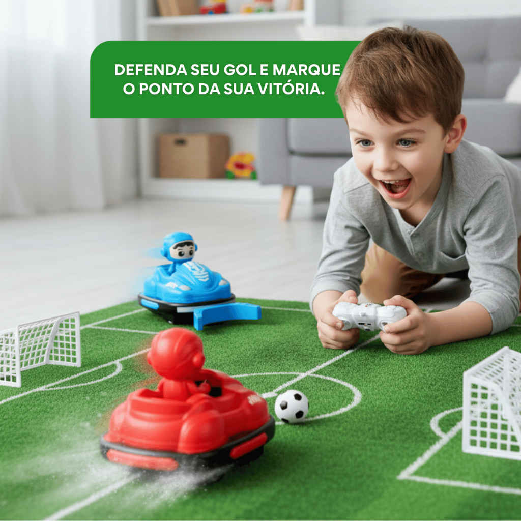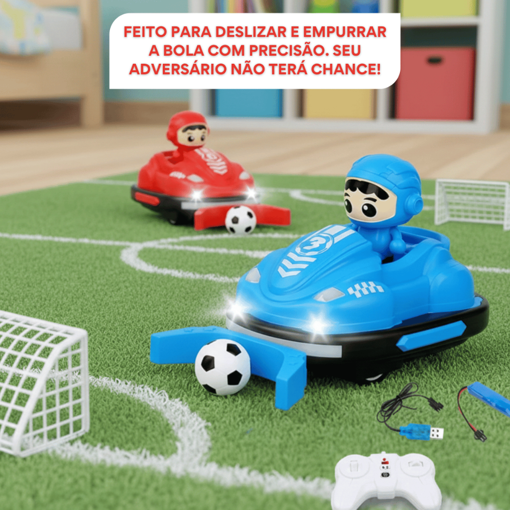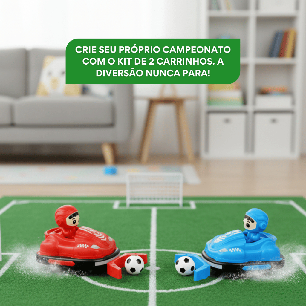 Kit Com 2 Carrinho Kart Controle Remoto Batalha Bate Bate Jogo Bola Trave Gol a Gol Infantil Kizumba