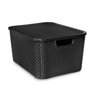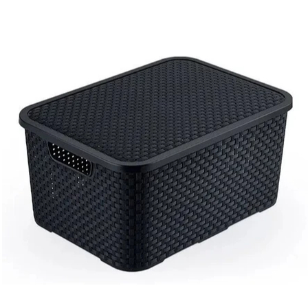 Kit Com 2 Cestos Caixas Organizadoras Rattan Com Tampa 7 Litros Preto Multiuso - TOY 25588