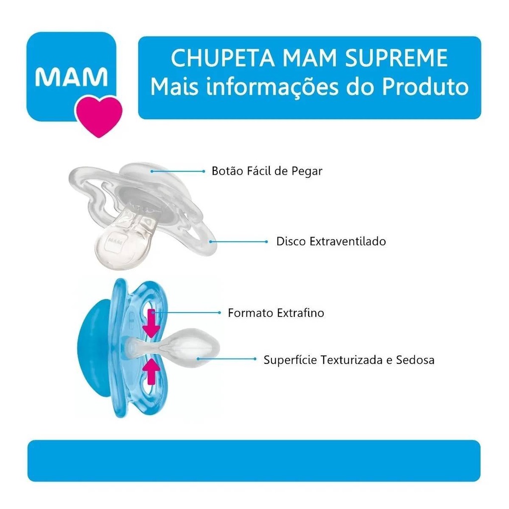 Kit Com 2 Chupetas Supreme Bico de Silicone 16m+ Azul - MAM