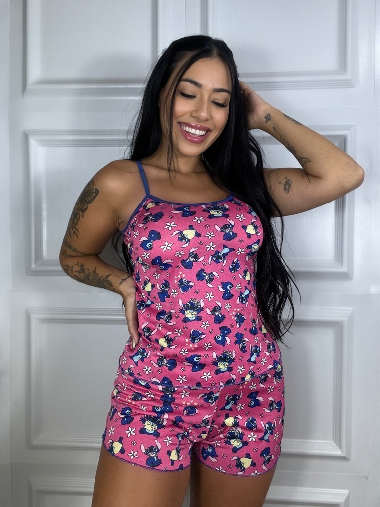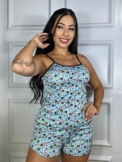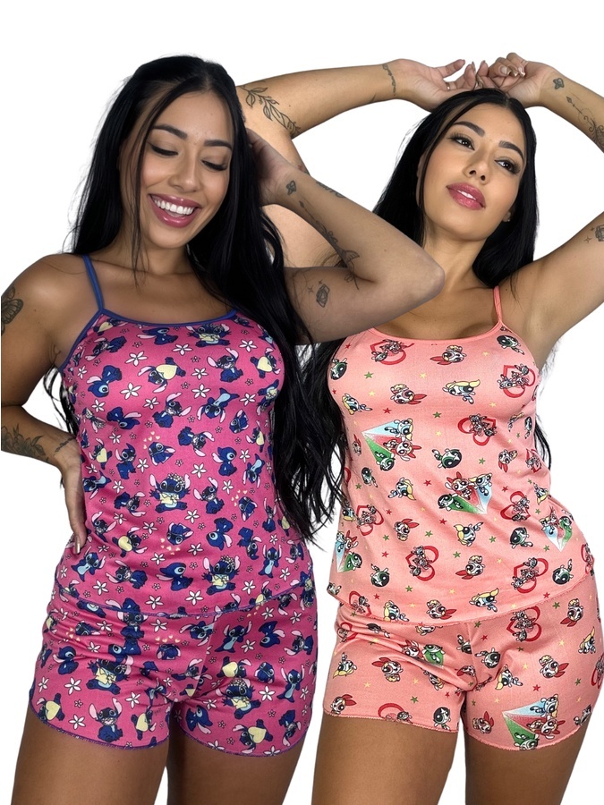 Kit 2 Peças Baby Doll Pijama De Dormir Estampado De Alcinha Short Doll Verão