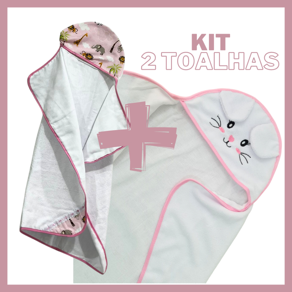 Kit Com 2 Toalhas De Banho Para bebe Forrada Estampada + Forrada Capuz Bordado