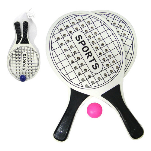 Kit Com 2x Raquetes Frescobol Tênis De Praia Beach Tennis Bola