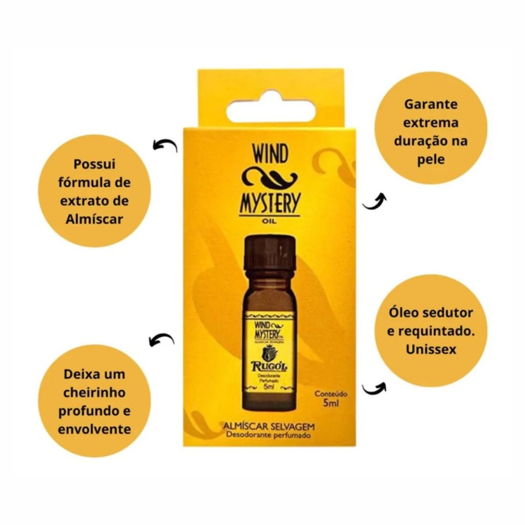 Kit Com 3 Almiscar Selvagem Wind Mystery Rugol Óleo Perfumado 5ml
