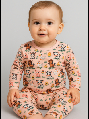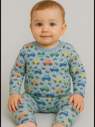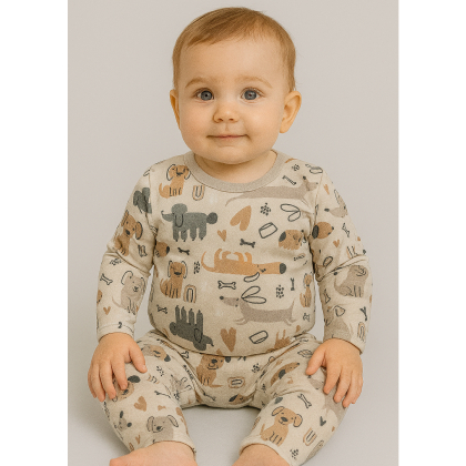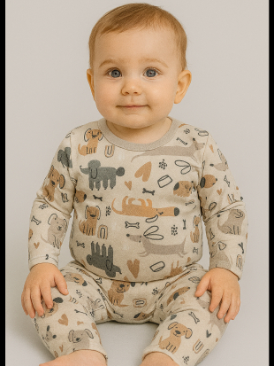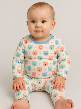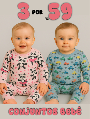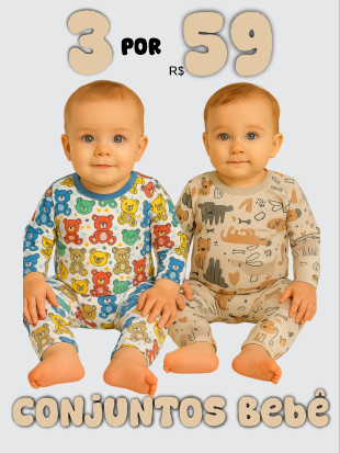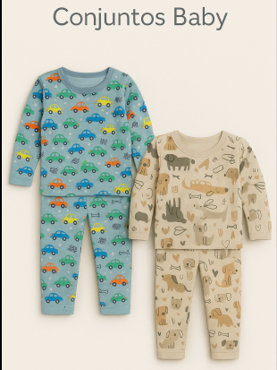 Kit Com 3 Conjuntos de Bebê Térmicos Peluciados Estampados Contendo 6 Peças, 3 Blusas + 3 Calças - Inverno Meia Estação