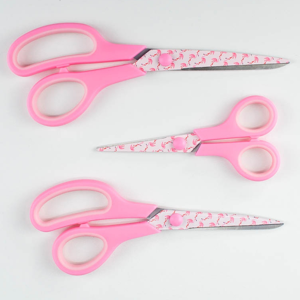 Kit 3 Tesouras Decoradas Corte Costura, Artesanato, Patchwork e Papelaria Aço Inoxidável - FLAMINGO