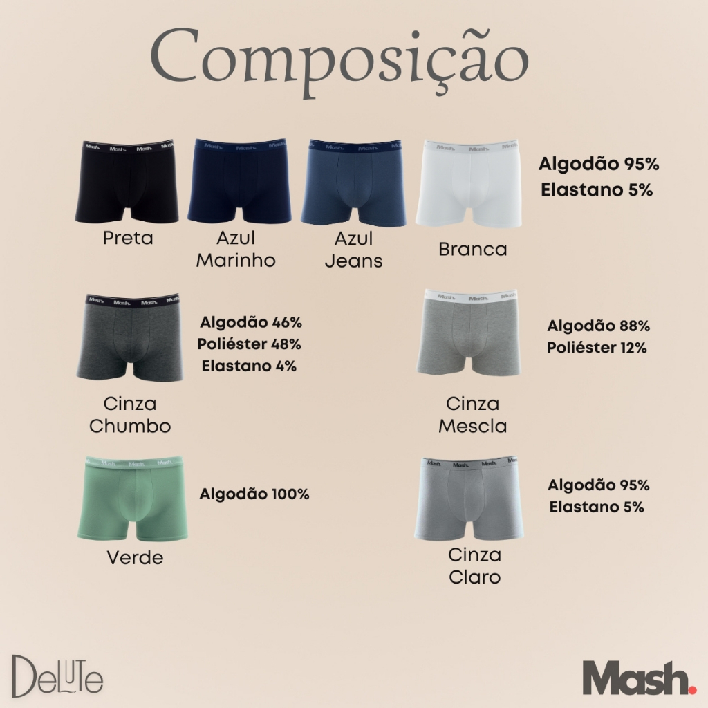 Kit Com 4 Cuecas Mash Modelo Boxer Box Em Algodao Cotton Masculino Adulto Basica