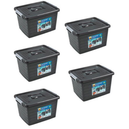 Kit Com 5 Caixas Organizadoras C/ Tampa e Trava 30 Litros Preta - Arqplast - Toy 25864