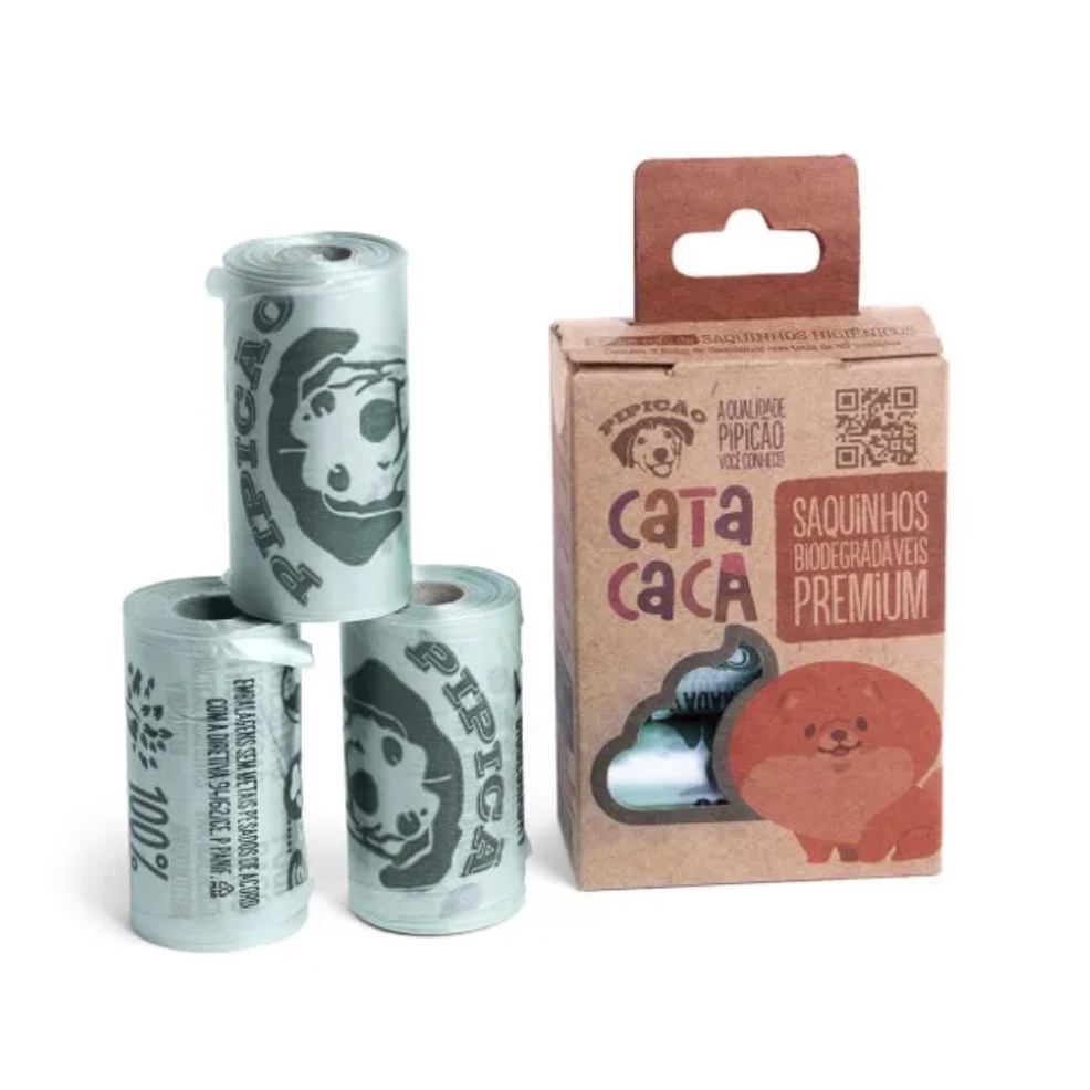 Kit Com Caixa Refil Saquinho Cata Caca Biodegradável para Recolher Necessidades Fezes Cão - Pipicão