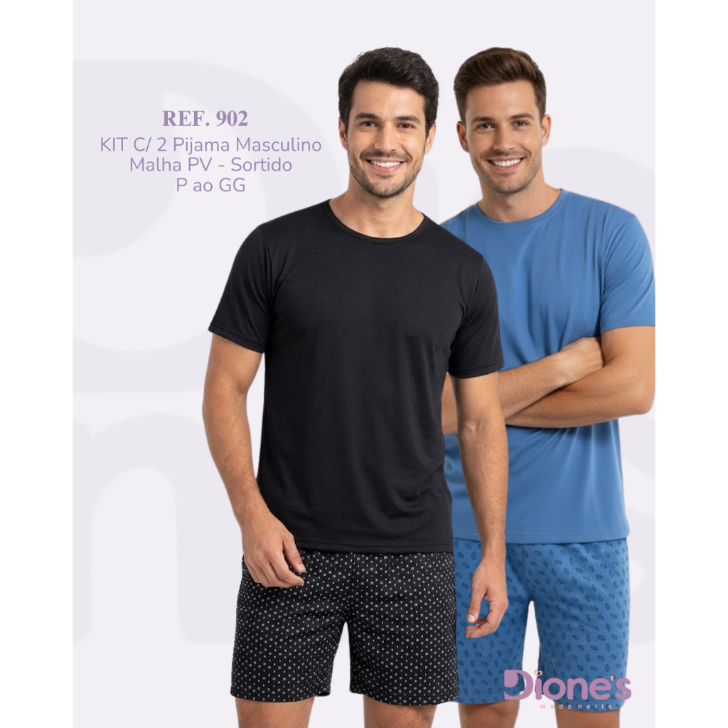Kit Combo 2 Pijamas Masculino Curto Blusa e Short Promoção Homem Pronta Entrega Envio Rapido