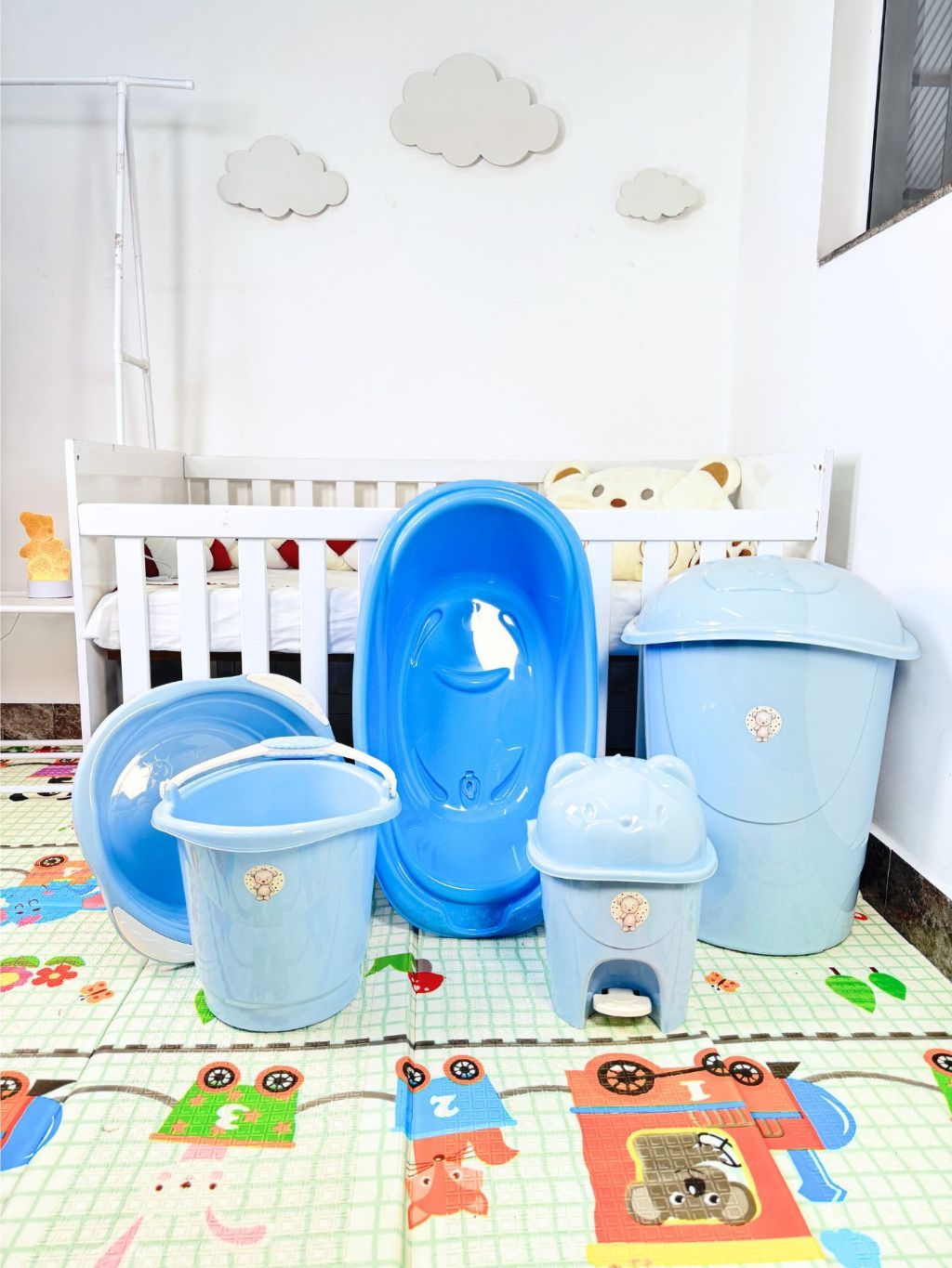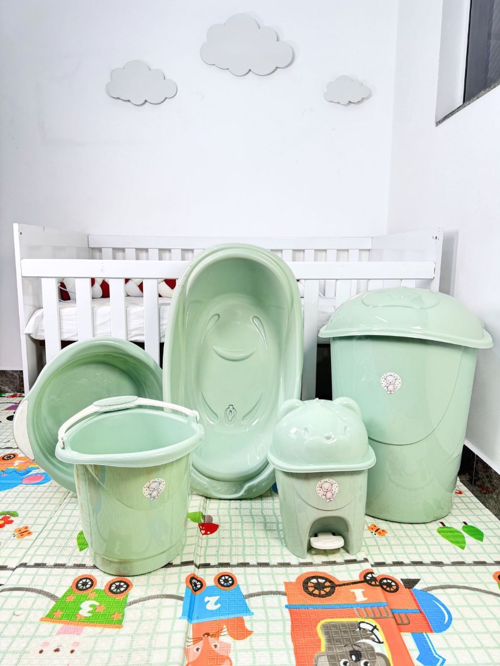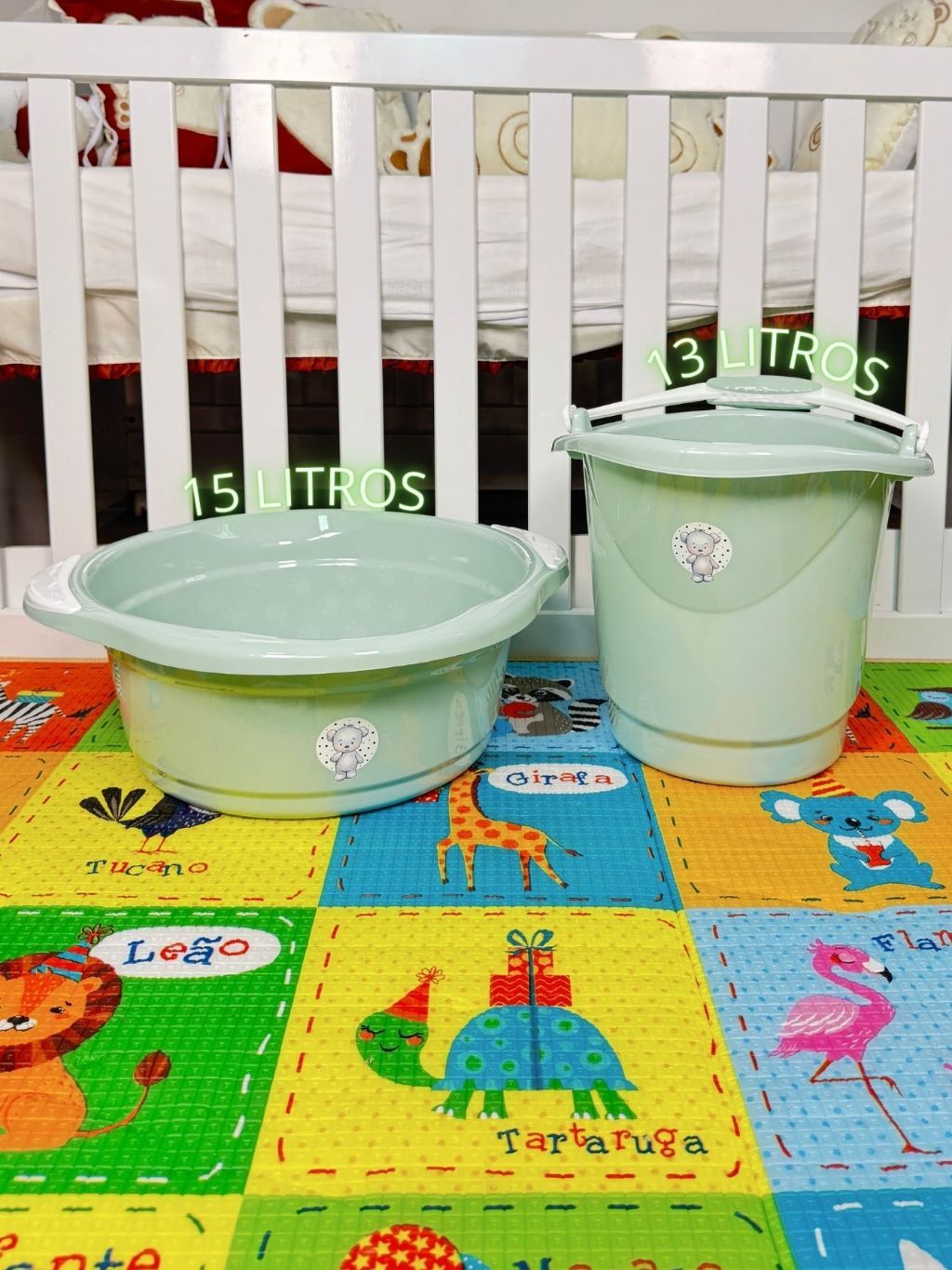 Kit Completo Banho e Quarto do Bebe: Cesto 41L, Lixeira 6.2L, Banheira 20L, Balde 13L e Bacia 15L