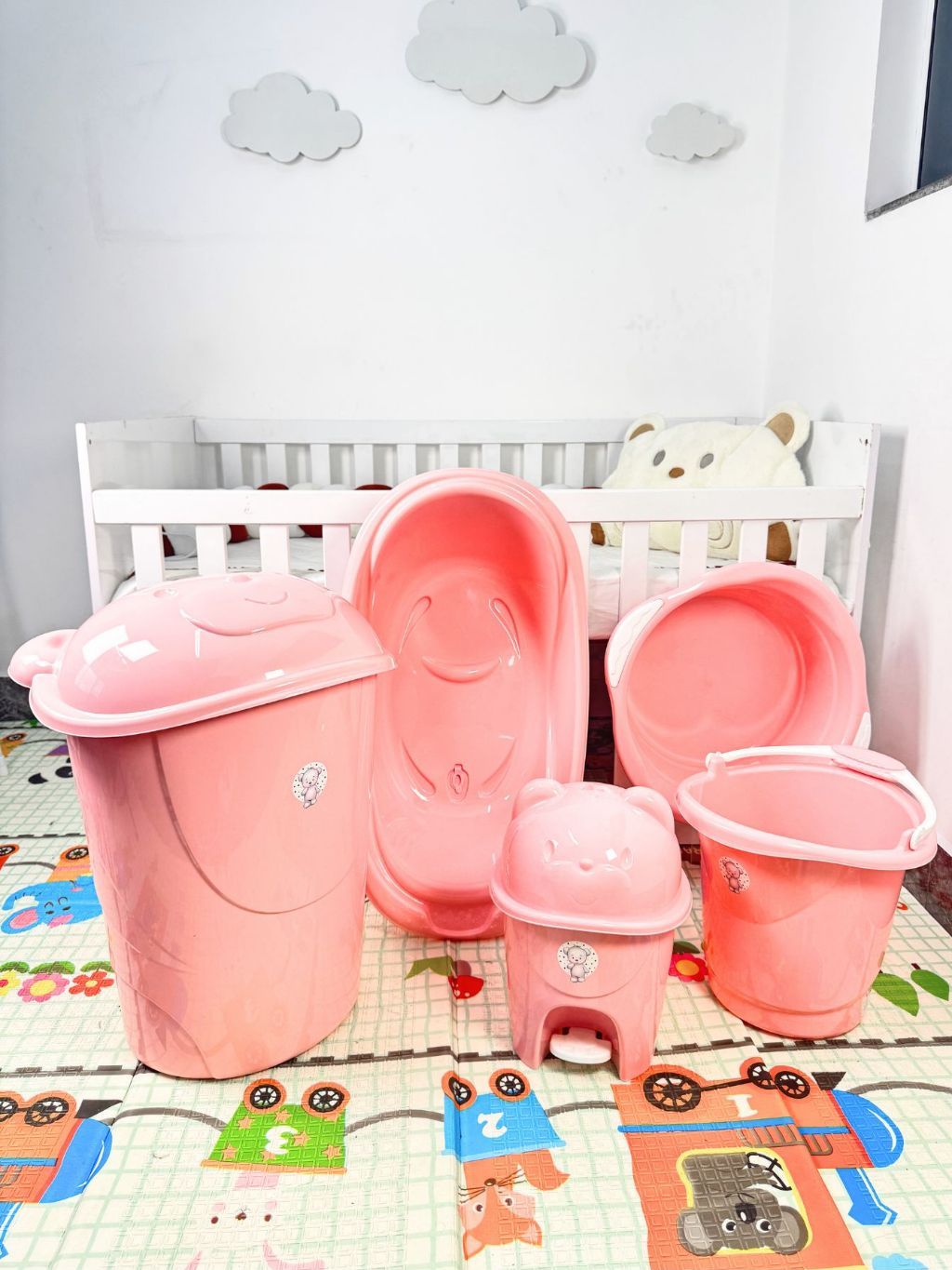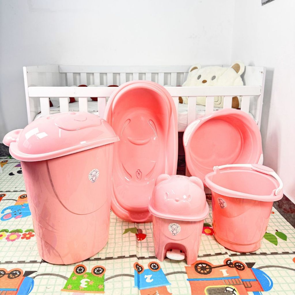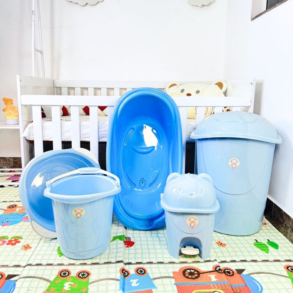 Kit Completo Banho e Quarto do Bebe: Cesto 41L, Lixeira 6.2L, Banheira 20L, Balde 13L e Bacia 15L