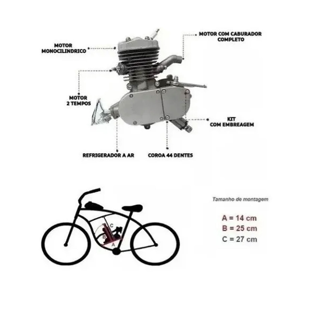 Kit Completo Motor Bike 80CC Para Bicicleta Motorizada 2 Tempos 60km/h ENVIO IMEDIATO