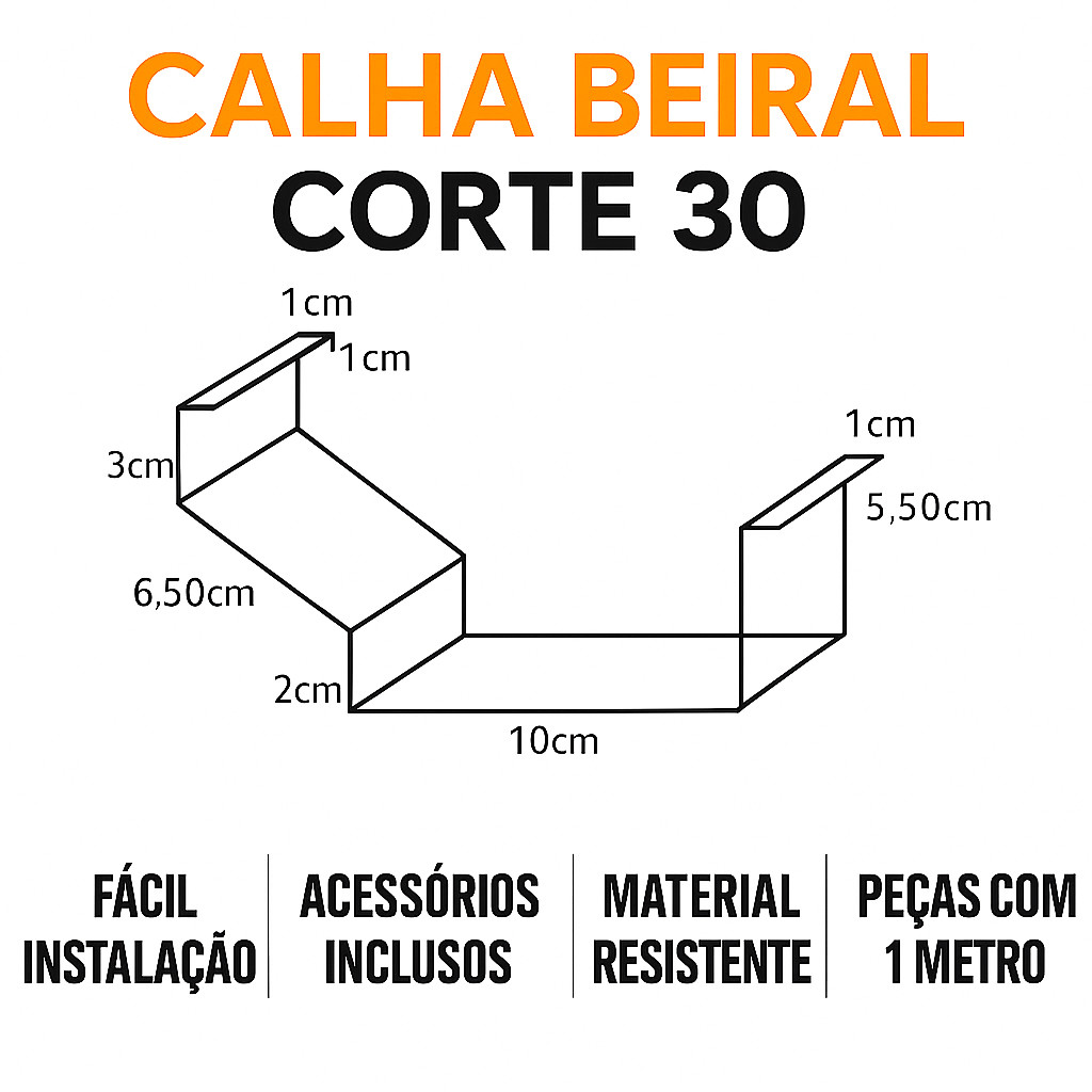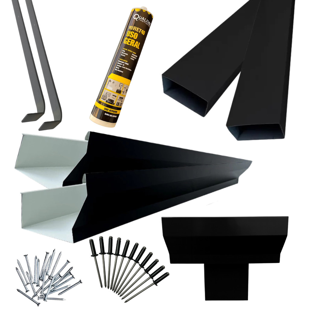 Kit Completo Pronto Para Instalar Calha Beiral e Condutor Preto Corte 30 e Acessórios Instalação