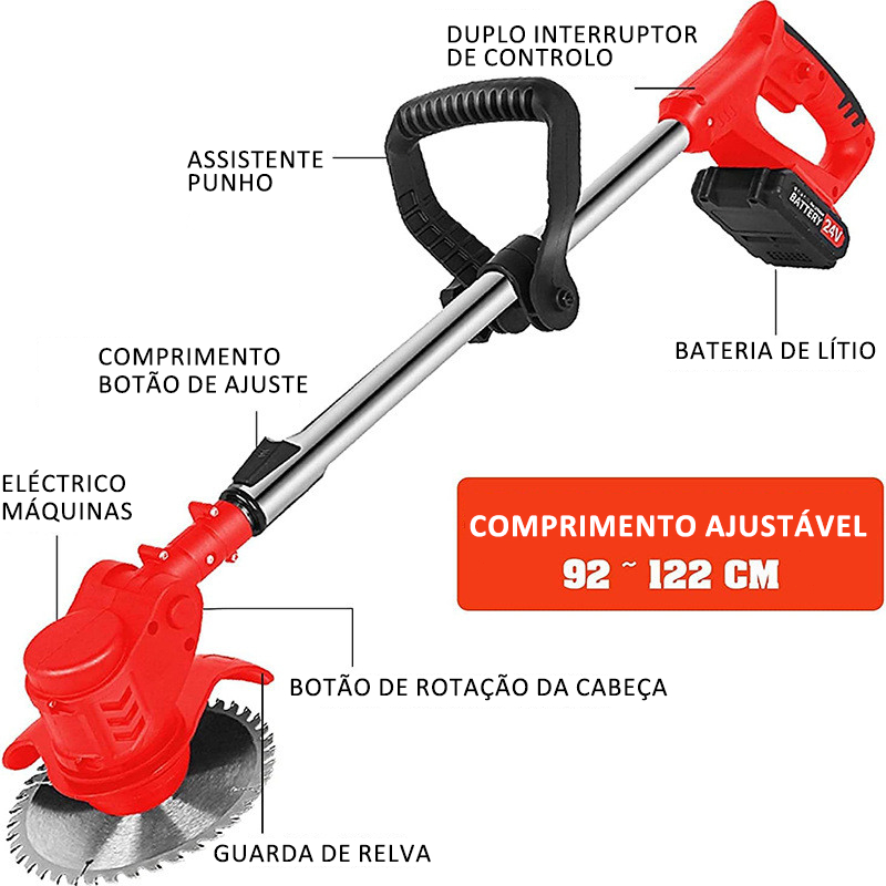 Kit Completo Roçadeira Elétrica 24V: Corte Grama, Galhos e Ervas Daninhas com 9 Acessórios Inclusos