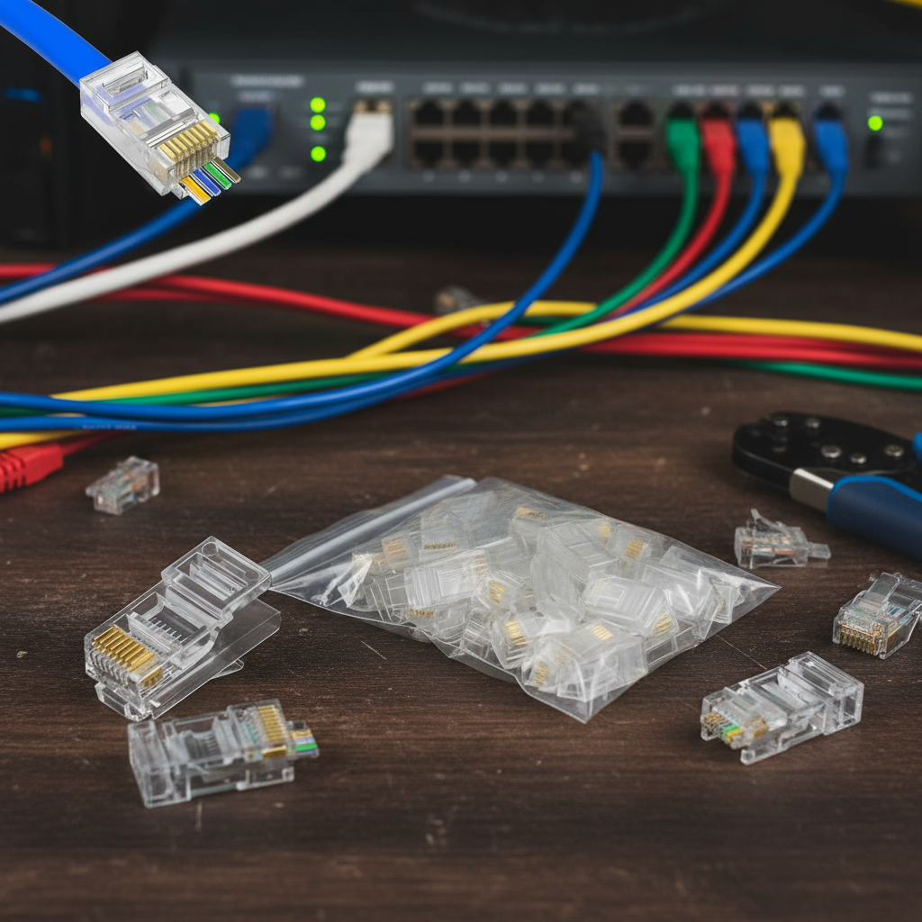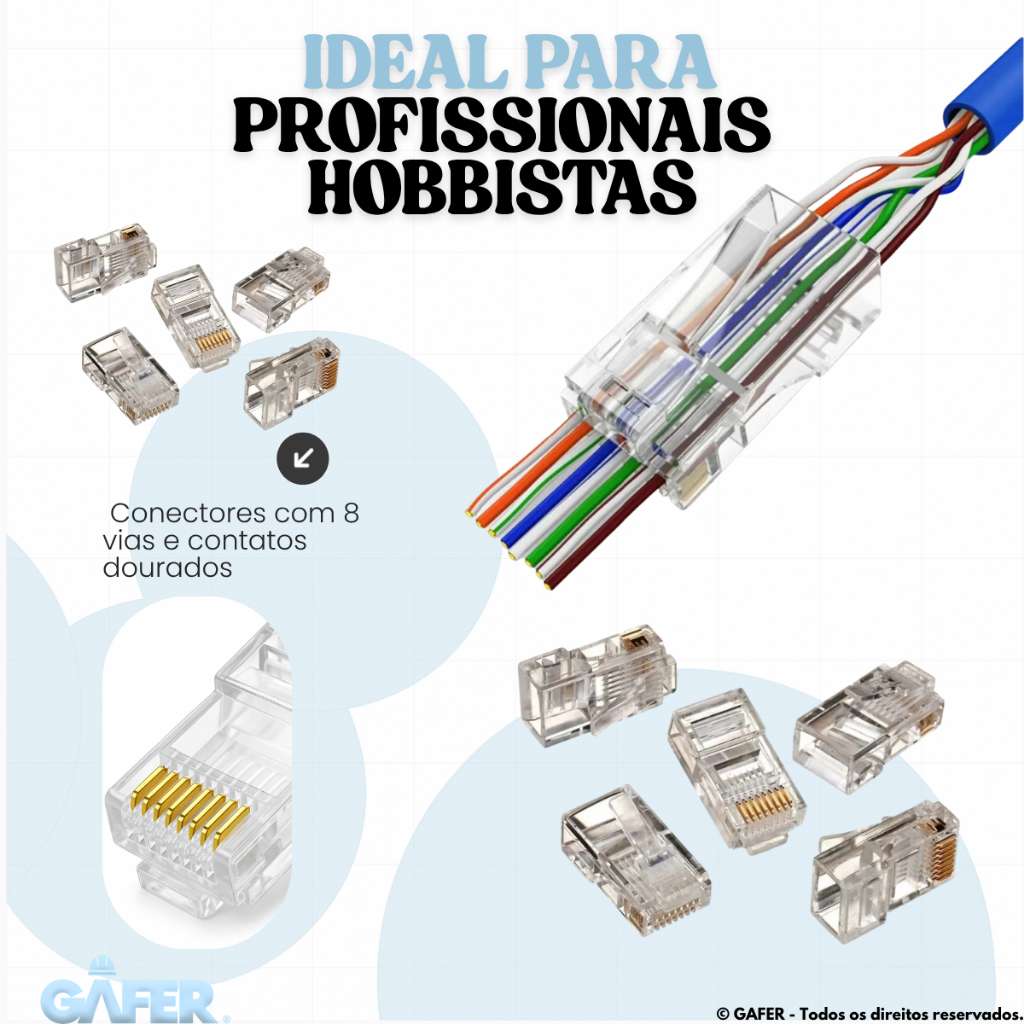Kit Conector RJ45 Vazado Pass Through CAT5 CAT5e CAT6a Rede Internet Crimpagem Kit Com 10,20,50 e 100 Banhado a ouro