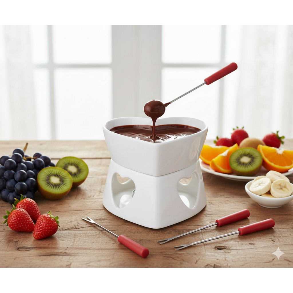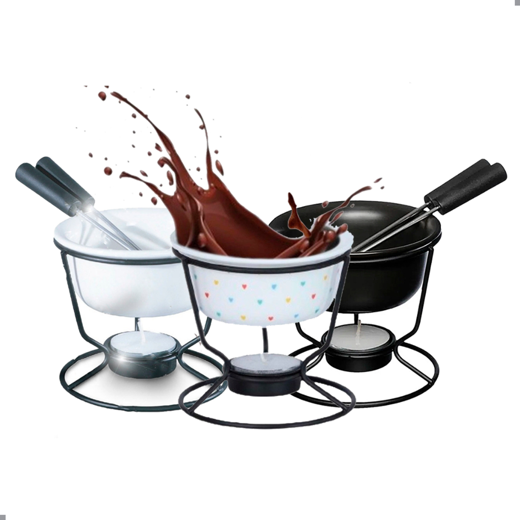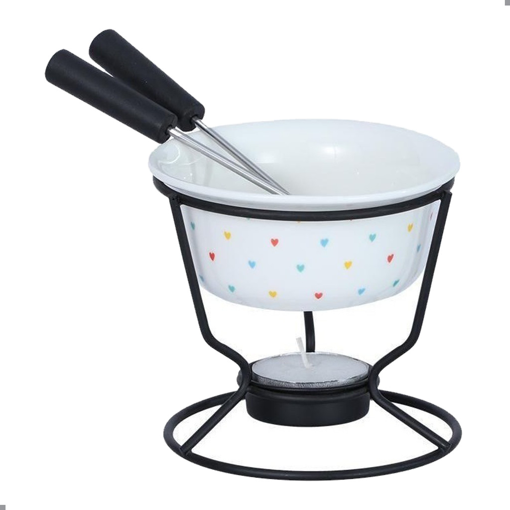 Kit Conjunto Fondue Halle 5 Peças Panela Ceramica Antiaderente Doce Salgado