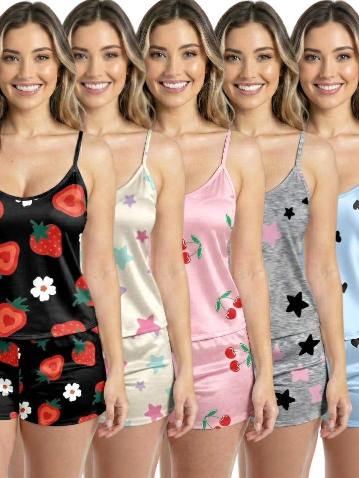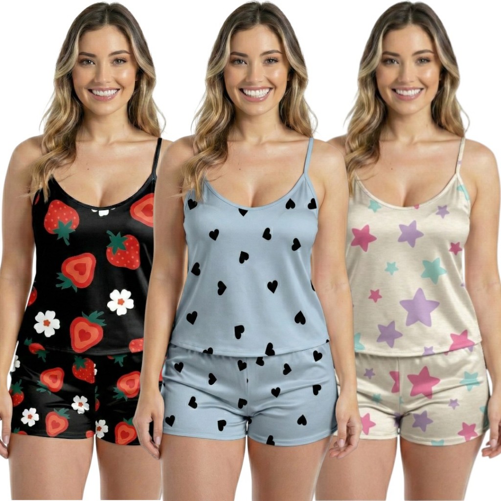 Kit Conjuntos Pijamas Baby Doll Short Doll Feminina Sem Bojo Conjunto Pijama Estampas Variadas