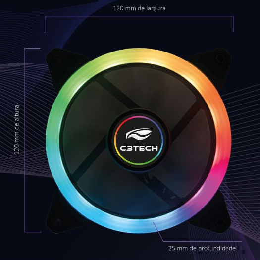 Kit Cooler Fan ARGB Controladora Controle Remoto 2 fans
