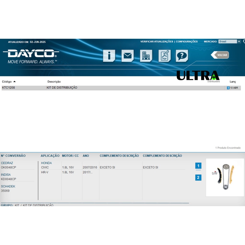Kit Corrente Comando Distribuição Motor para Honda Civic HRV 1.8 16V (Dayco KTC1208)