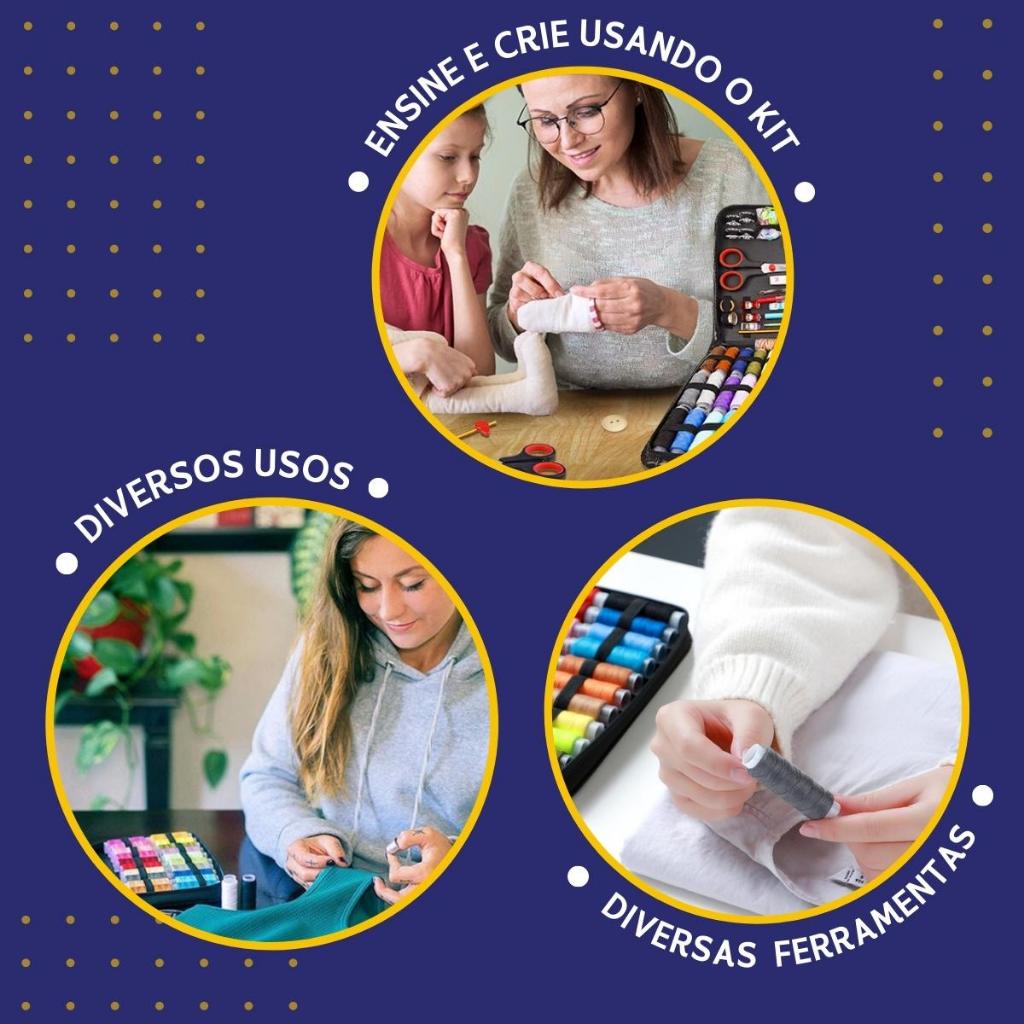 Kit Costura Com 33 Peças Linhas E Agulhas Estojo Completo F - Mazzal