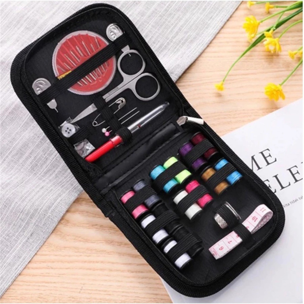 Kit Costura Viagem Acessórios Agulhas Linha Tesoura Bolsa Zíper Completo