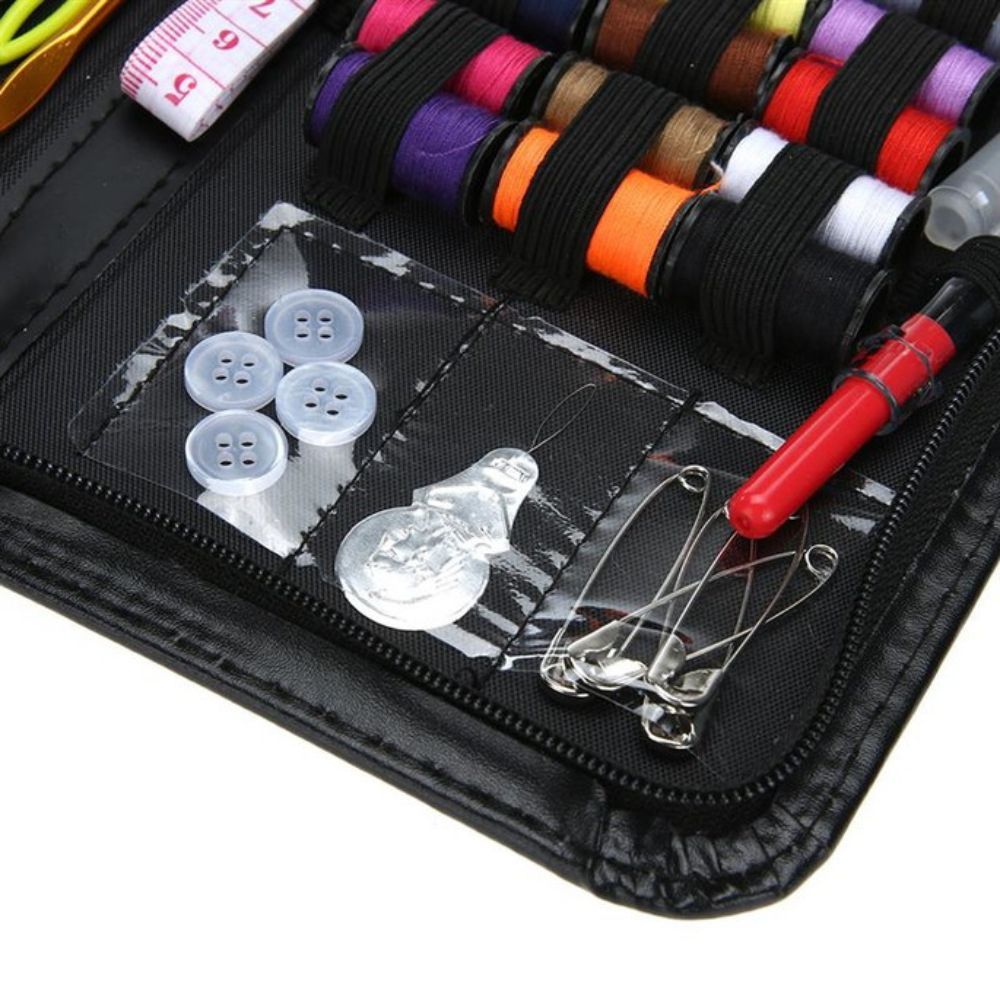 Kit Costura Viagem Acessórios Agulhas Linha Tesoura Bolsa c/ Zíper Completo