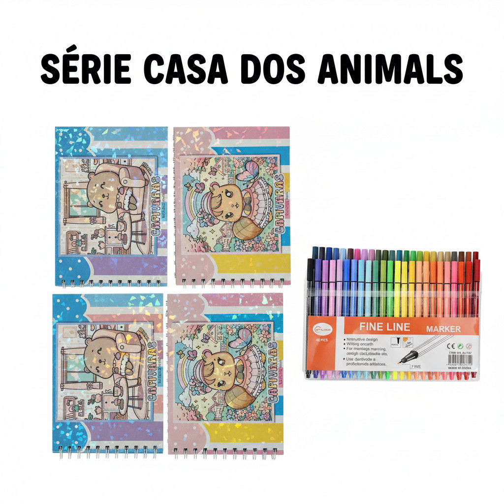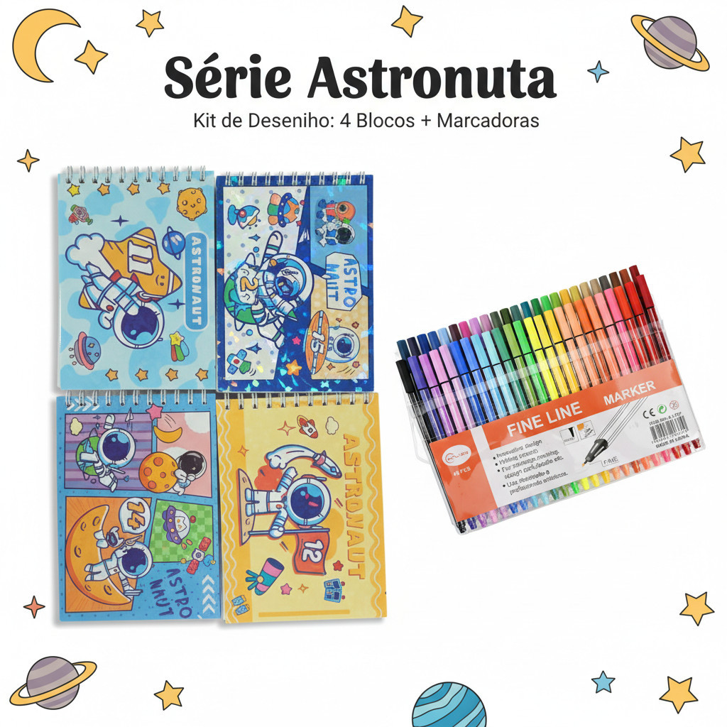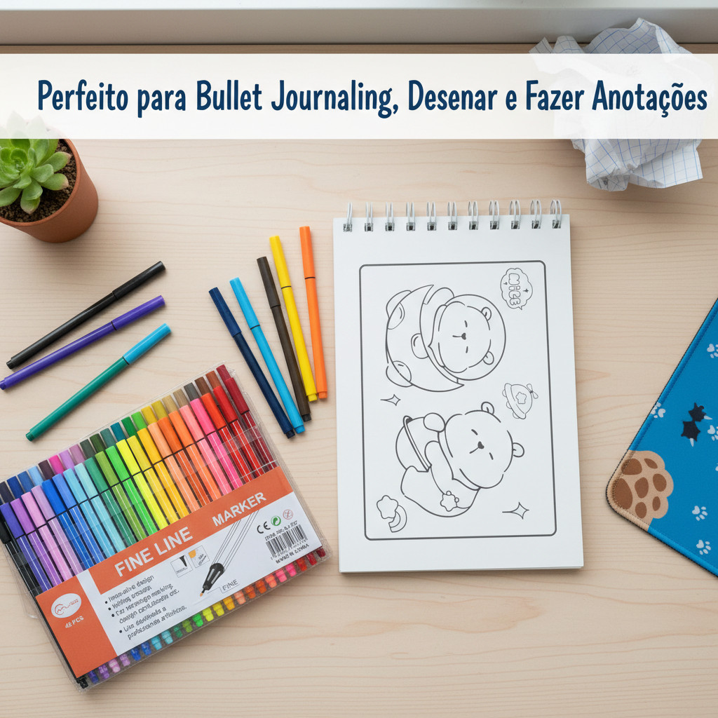 Kit Criativo para Crianças com 48 Marcadores Coloridos e Cadernos de Desenho