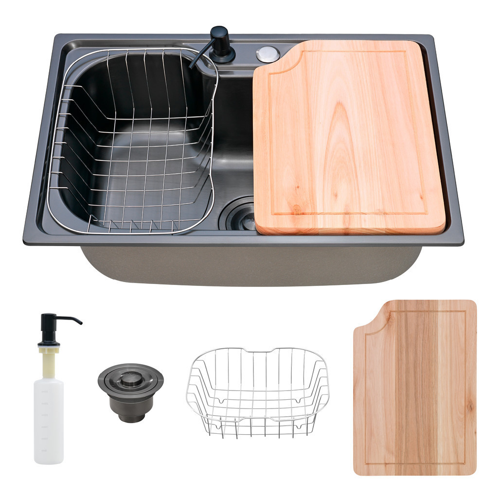 Kit Cuba Aço Inox Preto Gourmet Cozinha Acessórios c/ Tábua