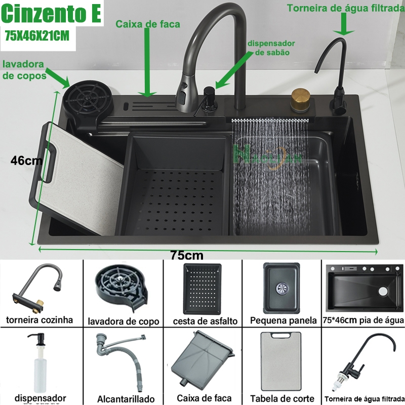 Kit Cuba Cozinha Gourmet Completa Inox Torneira Bancada 4 Funções Torneira Cuba Para Pia De Cozinha